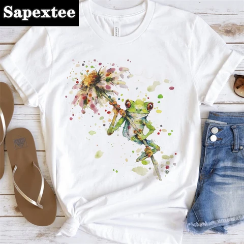 Cute Frog Watercolor Print Women's Graphic T-shirt