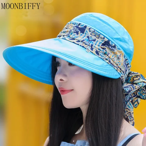 2023 New Foldable Wide Brim Sun Visor Hat Spring Summer UPF 50+ Protection Traveling Hiking Fishing Cap For Women