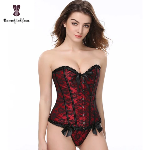 Black&Red Brocade Vintage Gothic Corsets And Bustiers Steampunk Corset Plus Size Steel Bone Waist Trainer 3XL Burlesque Costumes