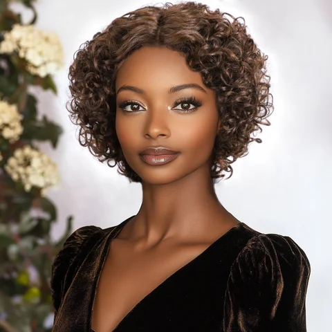 Stylish Afro Kinky Curly Bob Human Hair Wig for Women