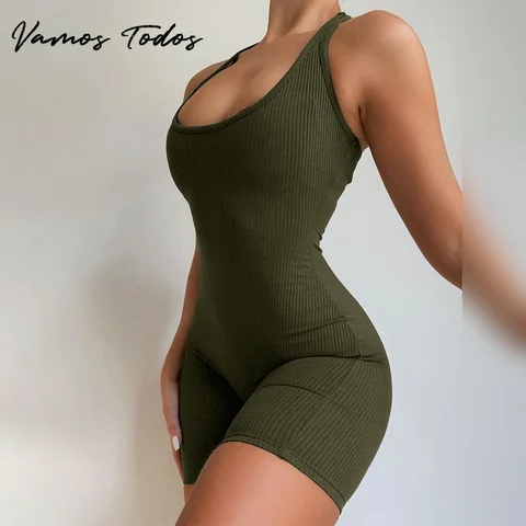 Vamos Todos 2021 Summer Basic Solid Jumpsuit For Women Crop Top Skinny Shorts Women Bodycon Bodysuit Sports Casual Ropa De Mujer