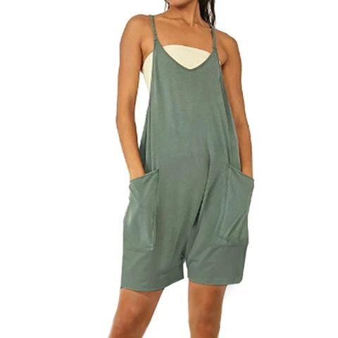 Summer Casual Short Jumpsuits Women Sleeveless Loose Wide Leg Rompers With Large Pocket Baggy Overalls For Women Linen Jump Suit
