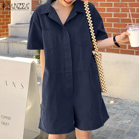 Fashion Solid Overalls Womens Button Down Playsuits ZANZEA 2021 Short Sleeve Lapel Short Rompers Female Casual Shorts Plus Size