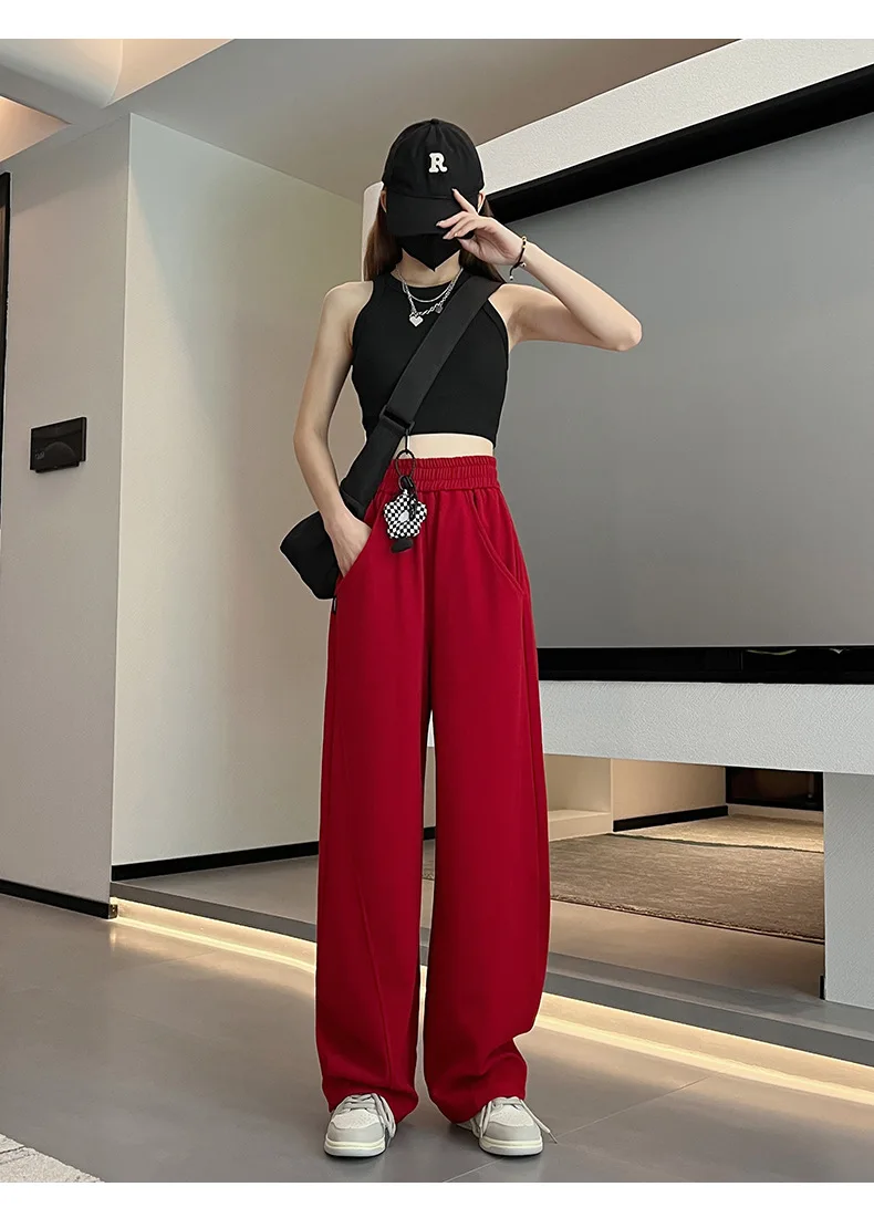 American fashion mop pants High Street Spicy Girls wide leg pants Women's casual sports pants Women's high waist jogging pants