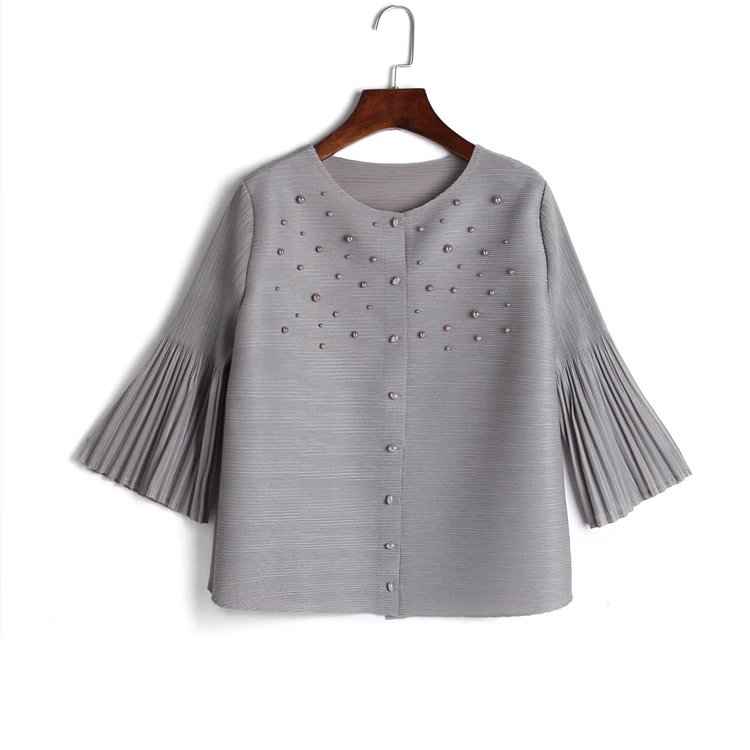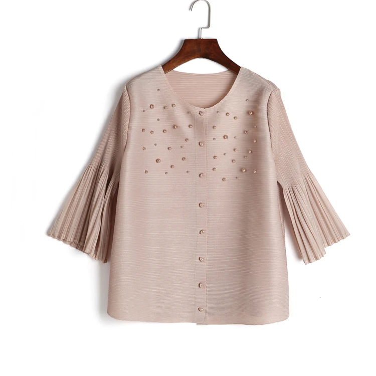 Changpleat Design bead woman Coat pleated Pleated 2017 summer loose thin solid 3/4 sleeve Short Women’s jacket Plus Size Outwear