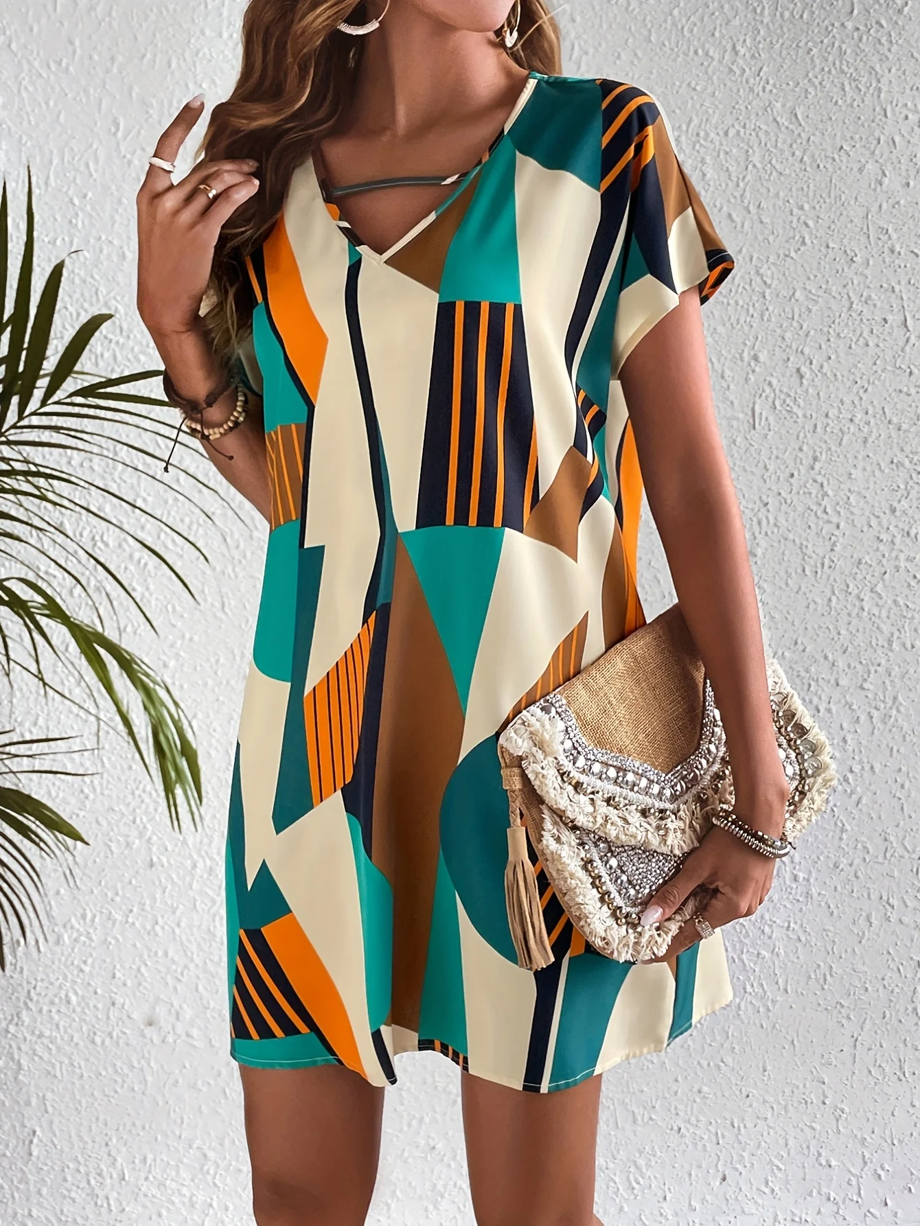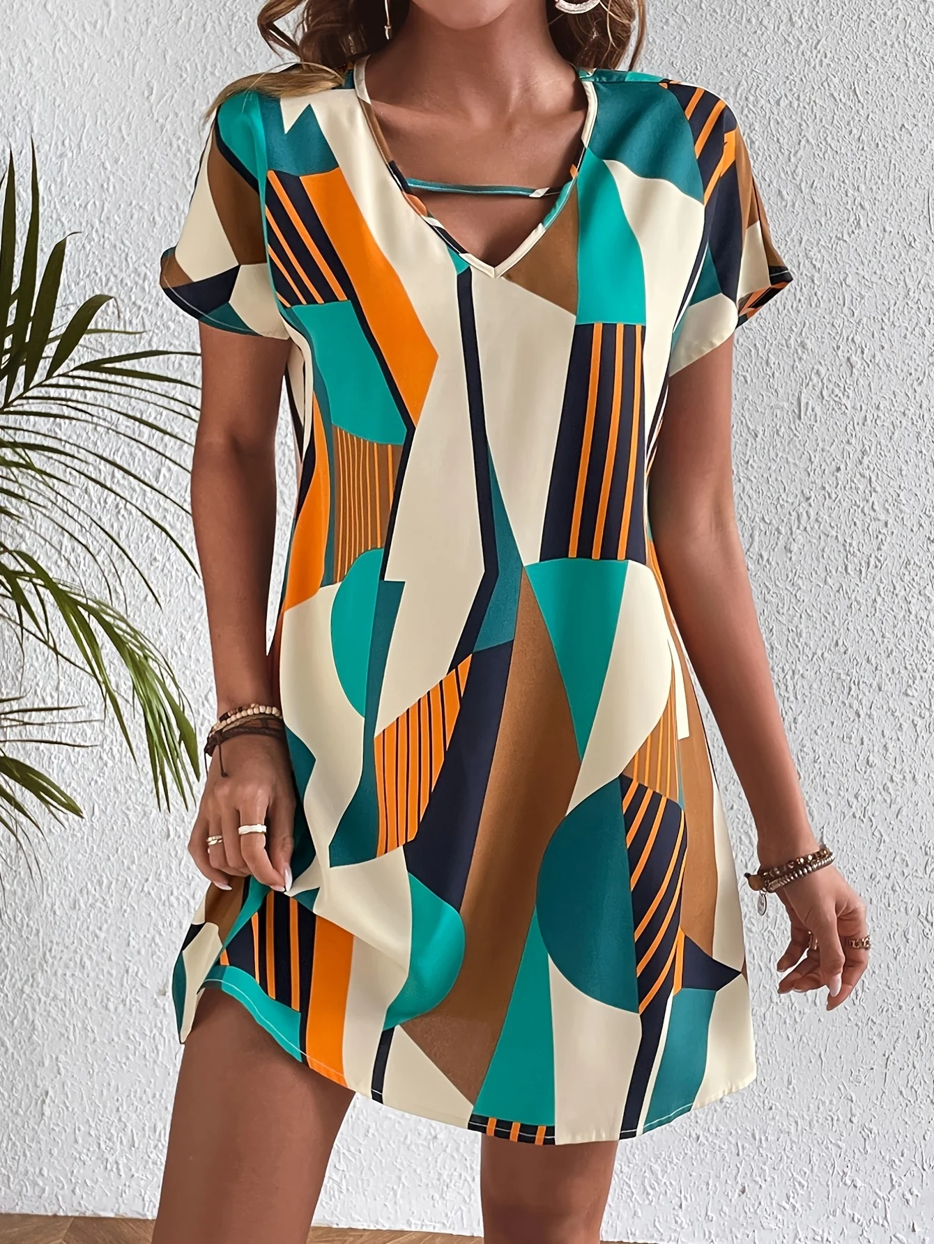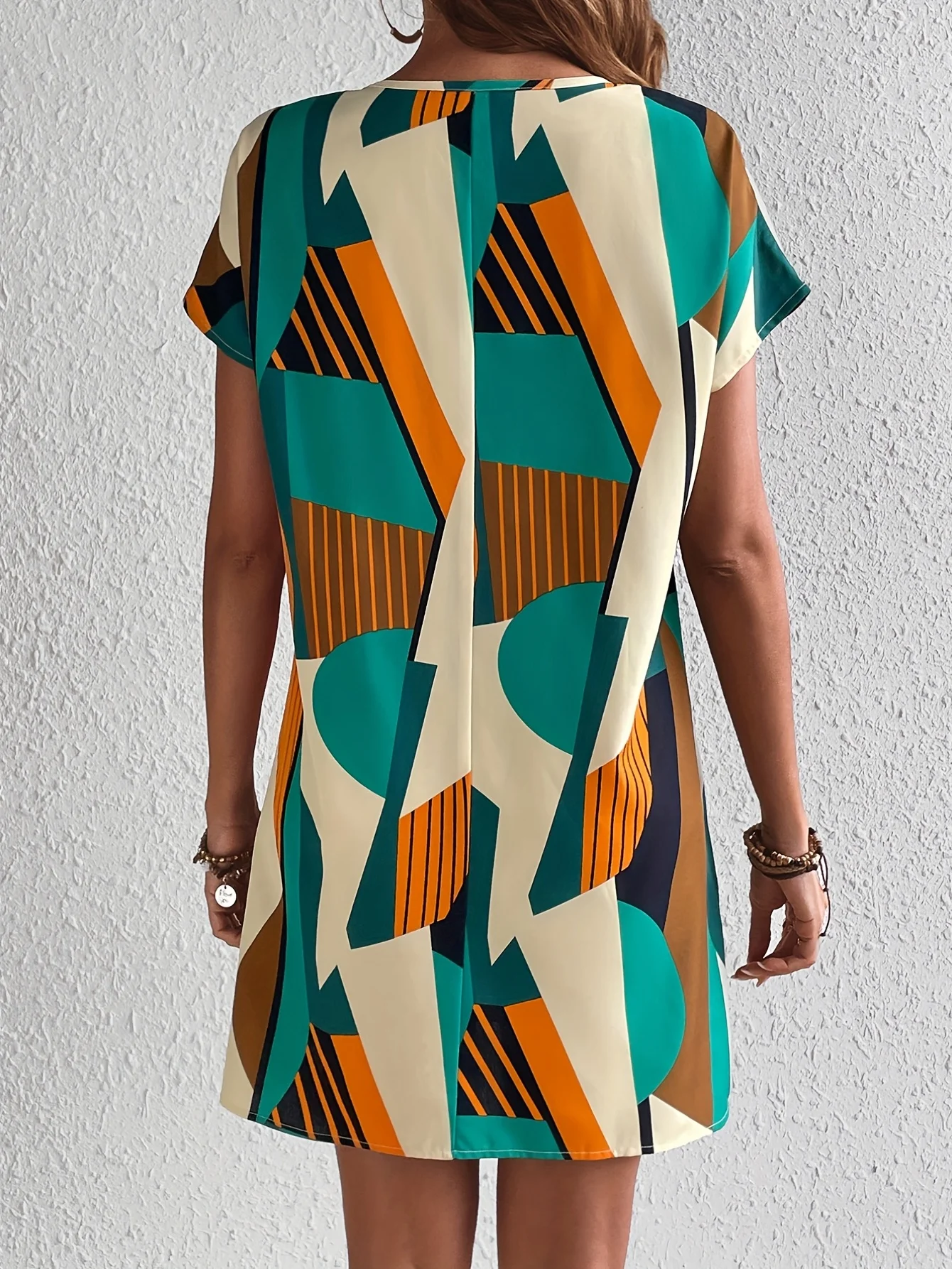 Elegant Geometric Pattern Printed Dress – European & American Fashion