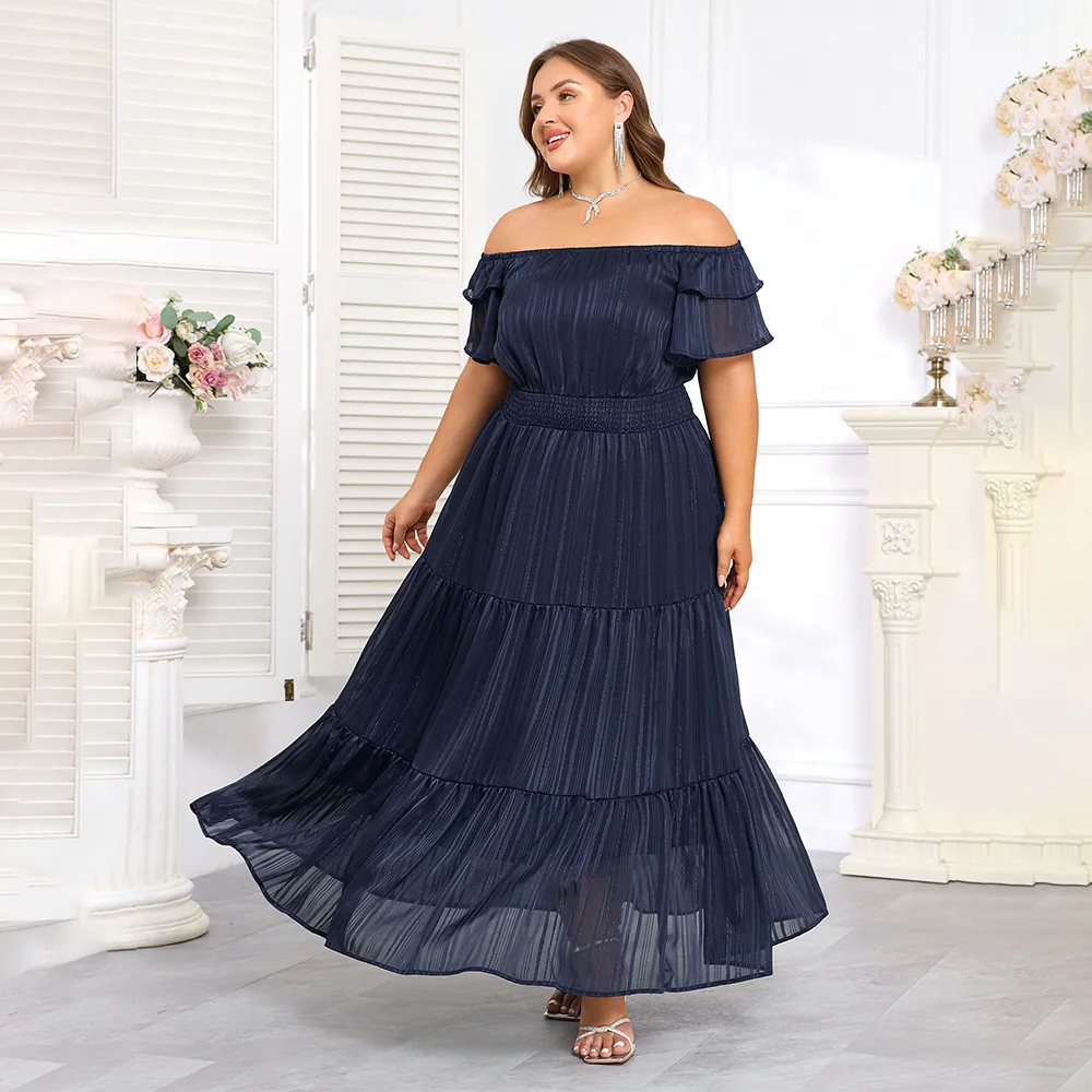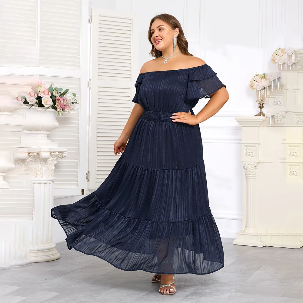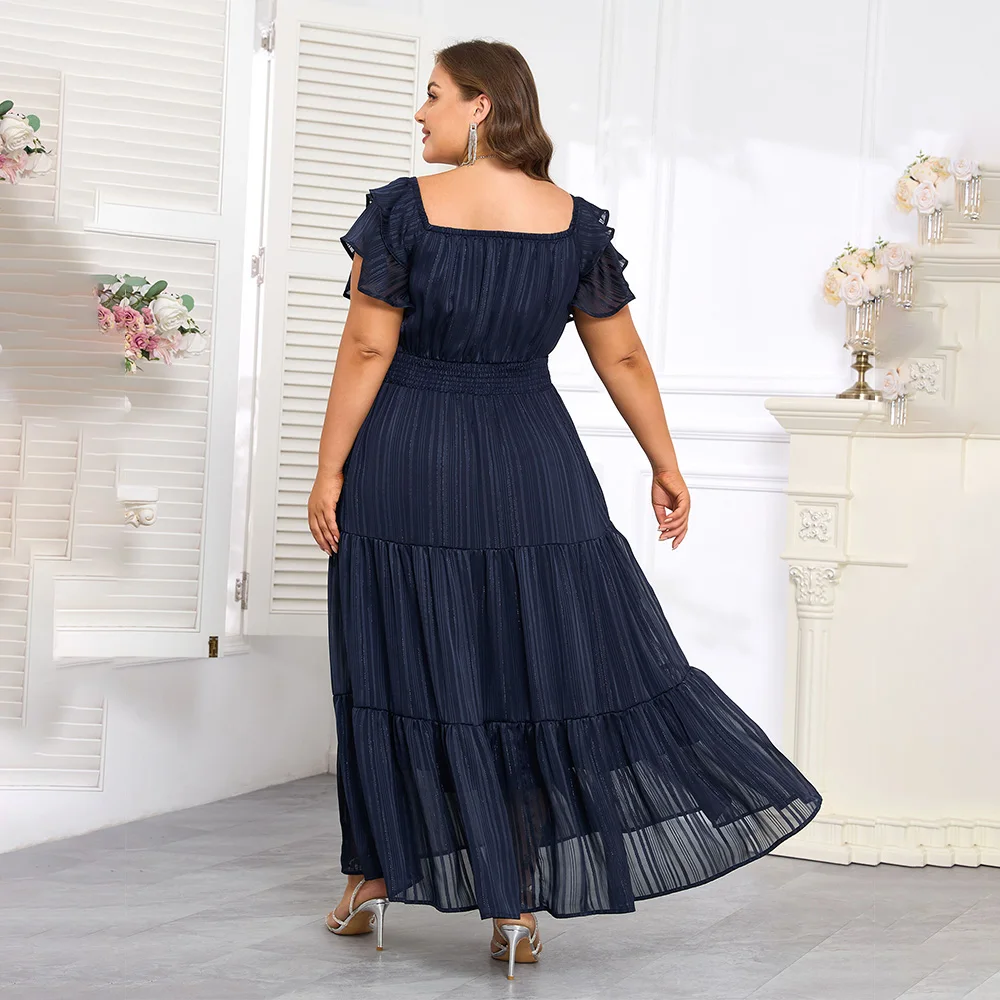 Elegant Pinstripe Butterfly Sleeve Maxi Dress for Plus Size Women