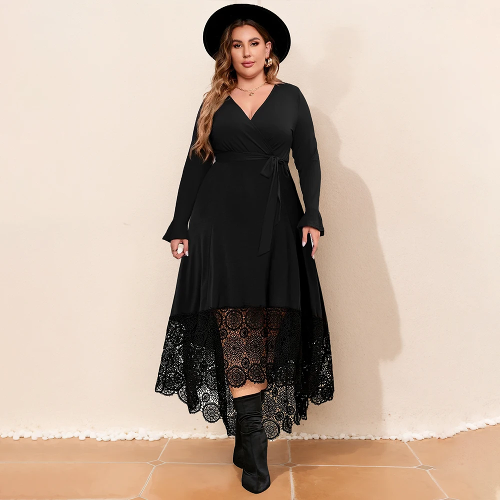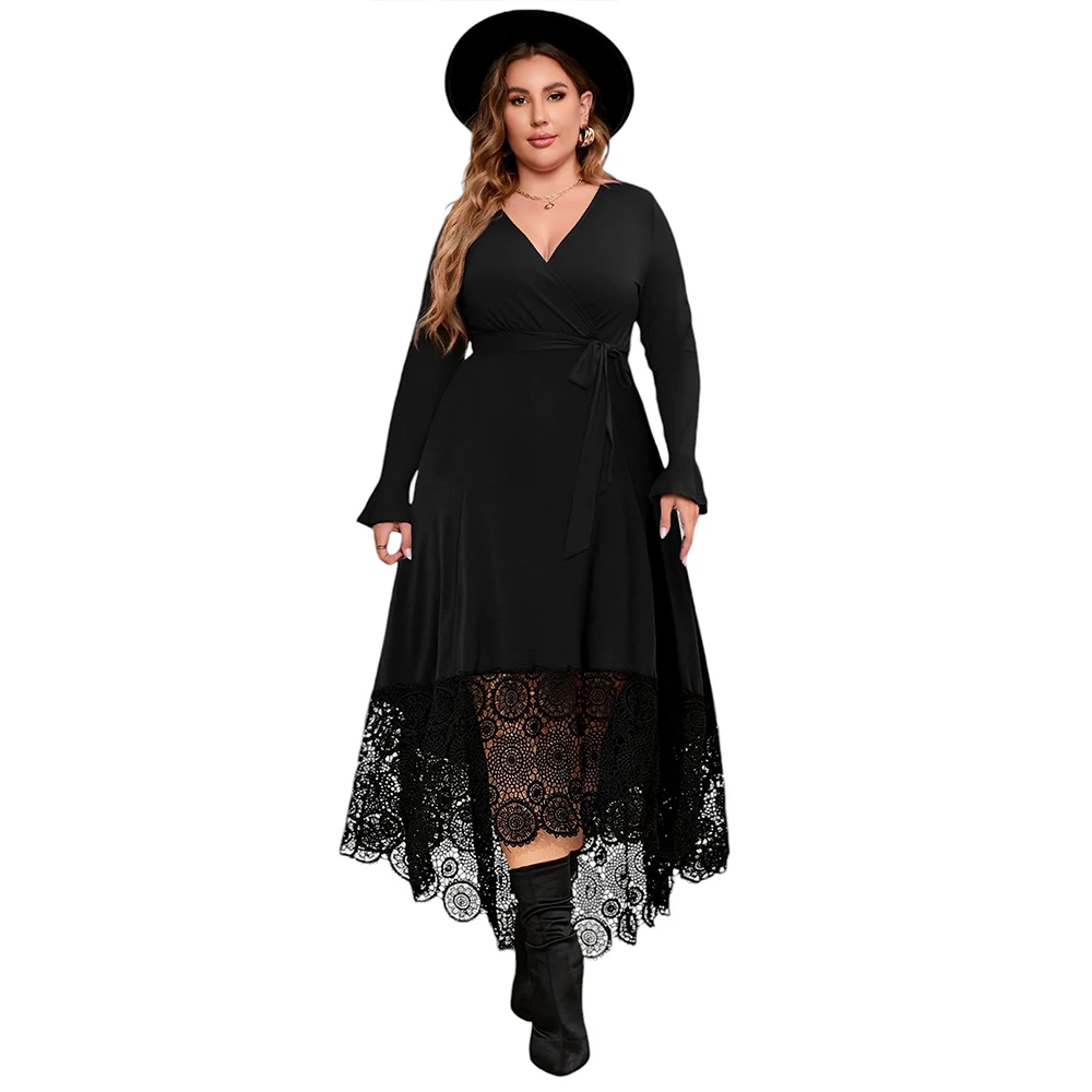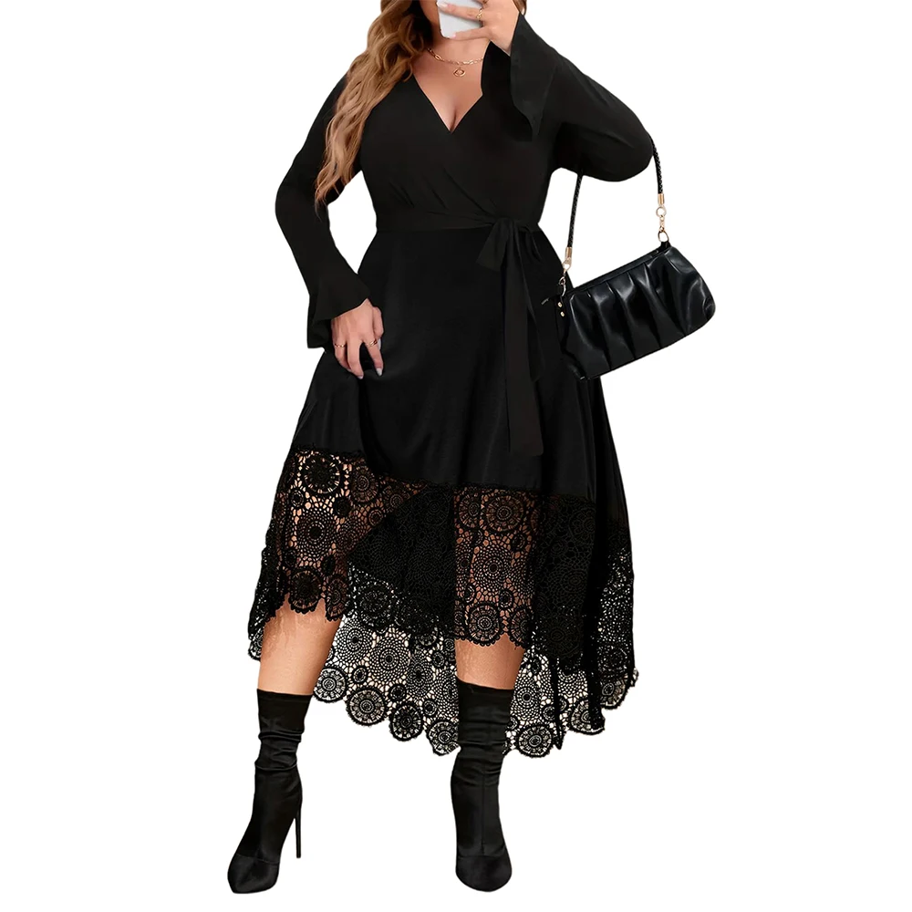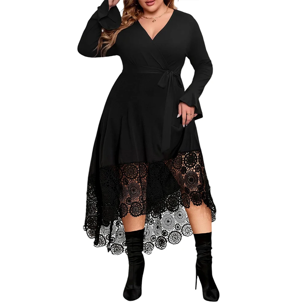 Elegant V-Neck Long Sleeve Bodycon Dress for Women – Plus Size Evening Party Formal