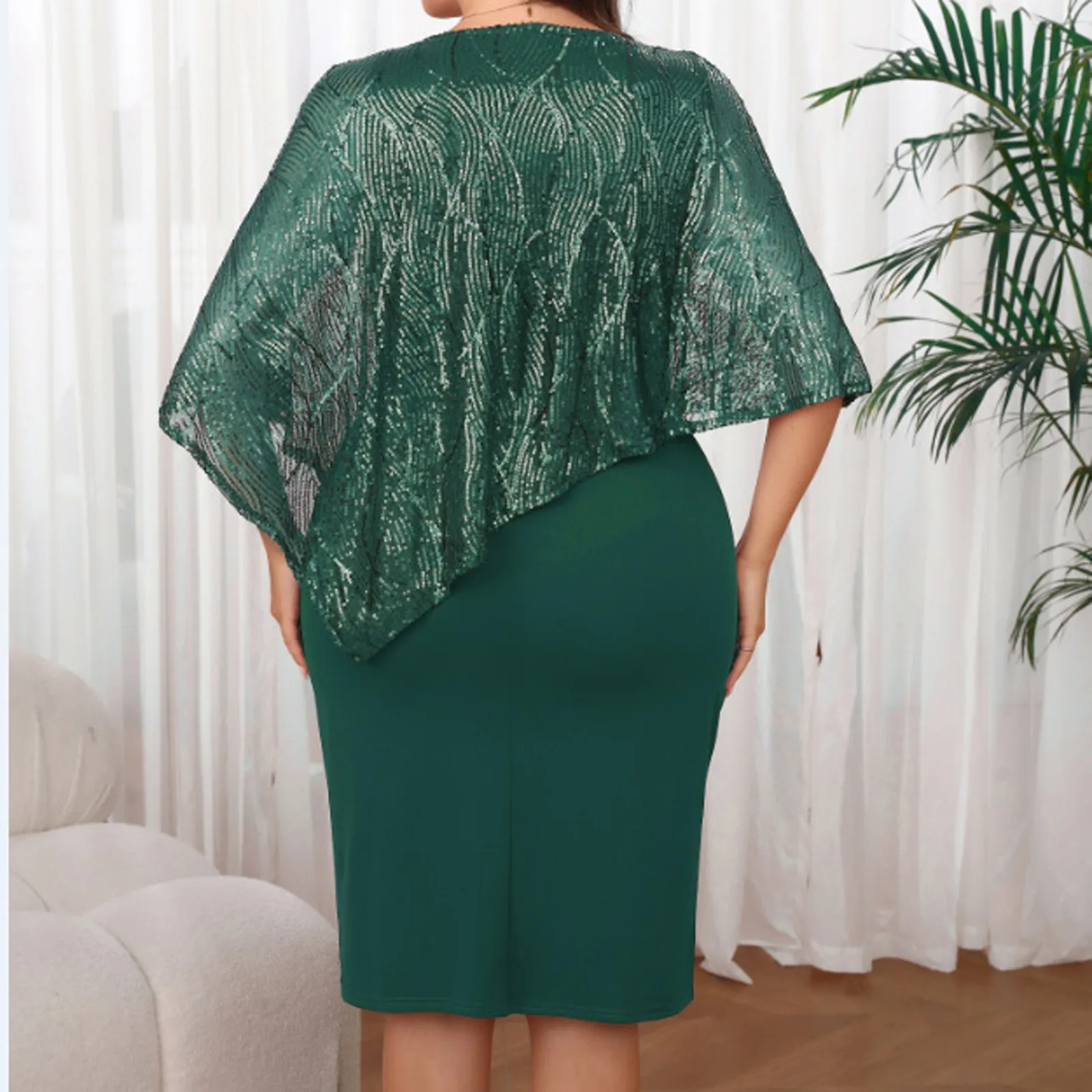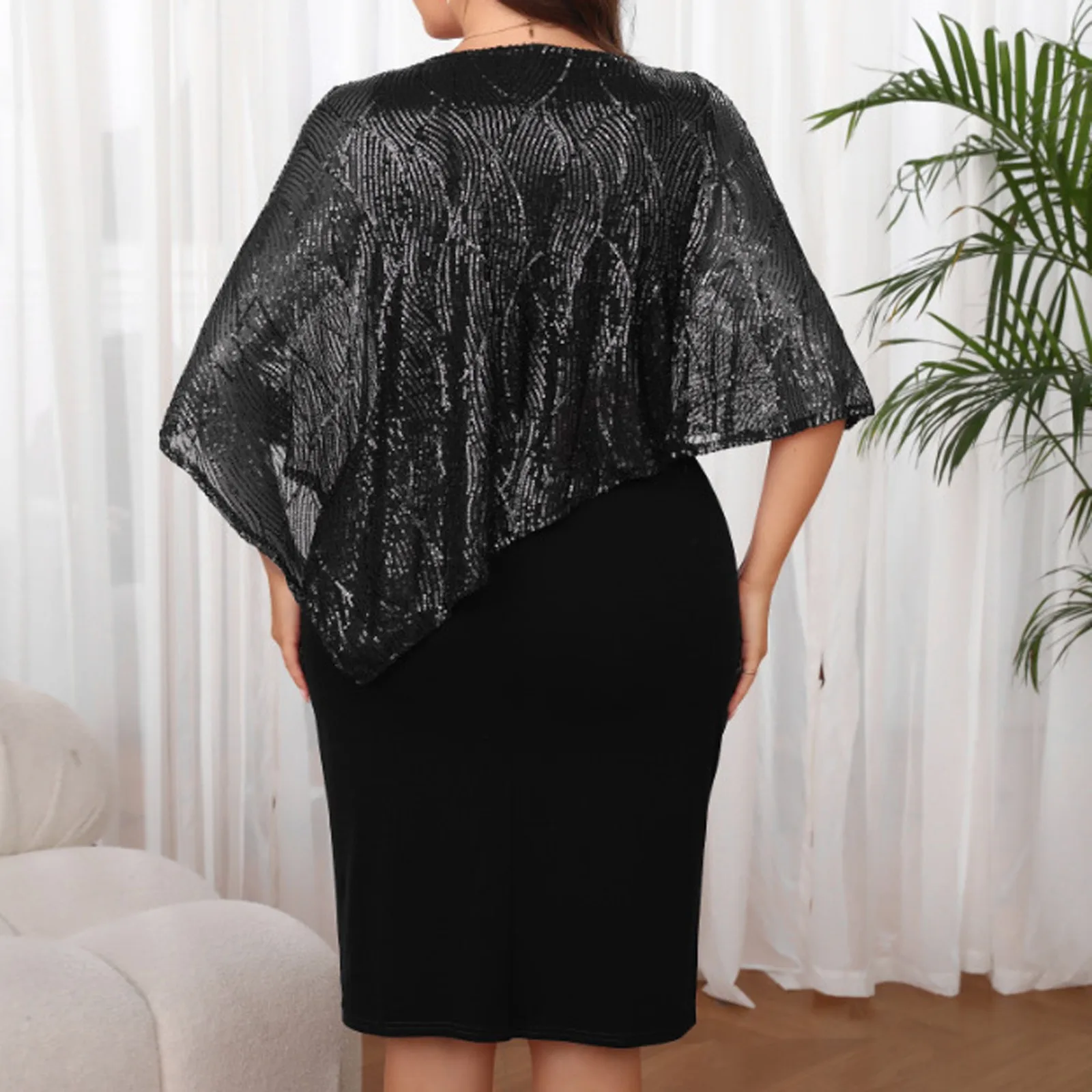 Women’s Bead Patchwork Plus Size Dresses Irregular Hip Hugging Dress Fashion Elegant Party Prom Banquet Matching Dress 5XL