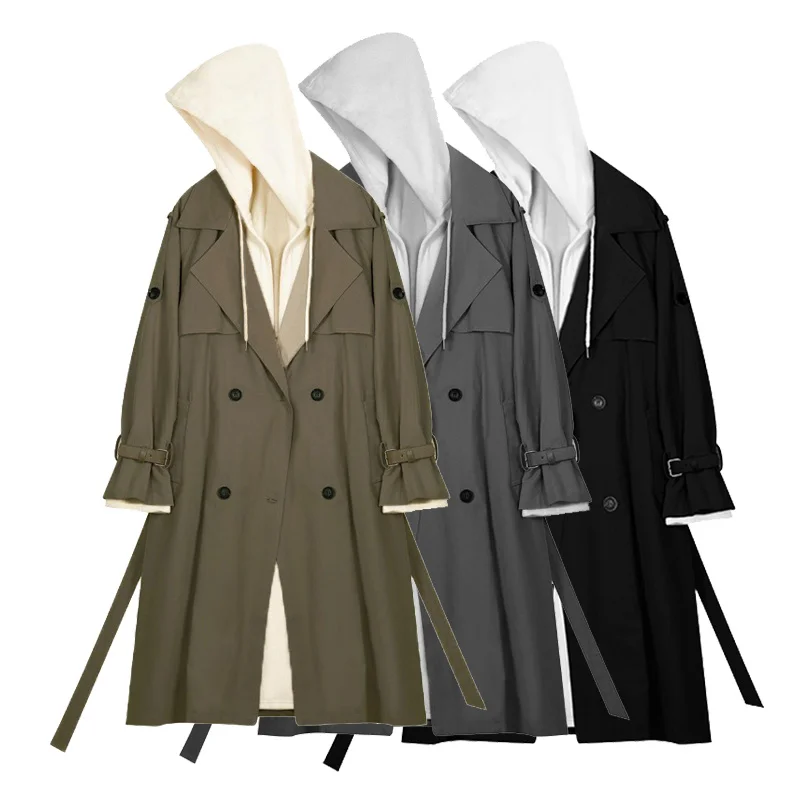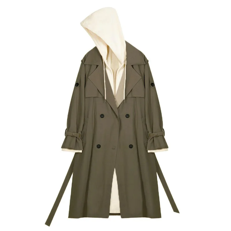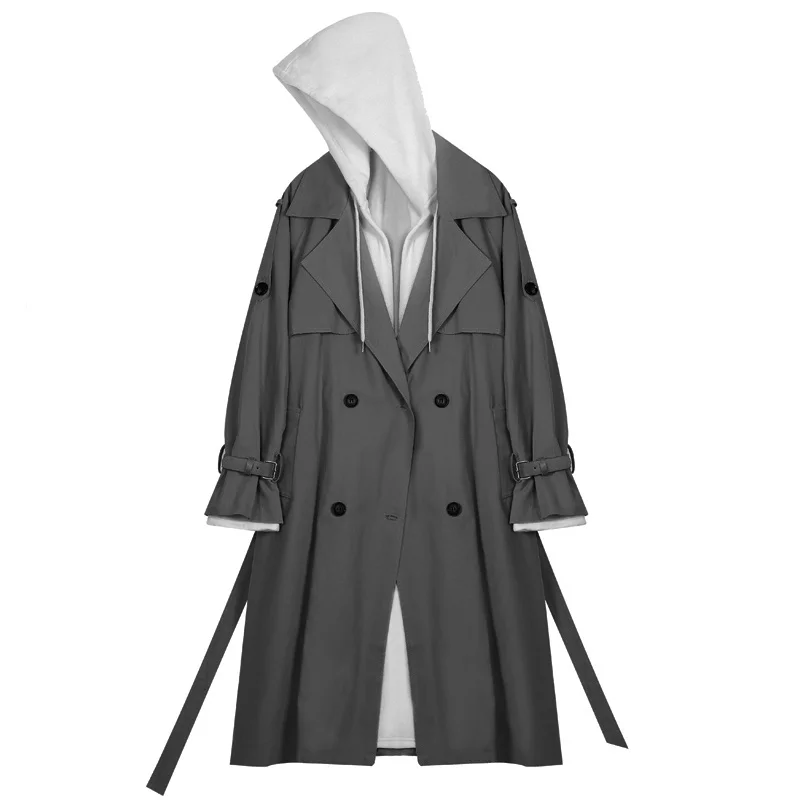 Fashion Takesi Trench Coat Women's Autumn New Hooded Loose Double Breasted Long Sleeve Lace Up Windbreaker Female Tide