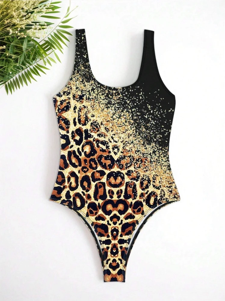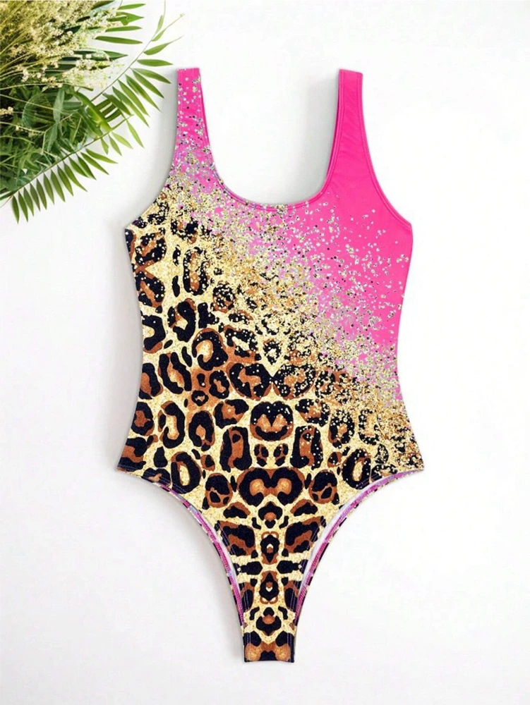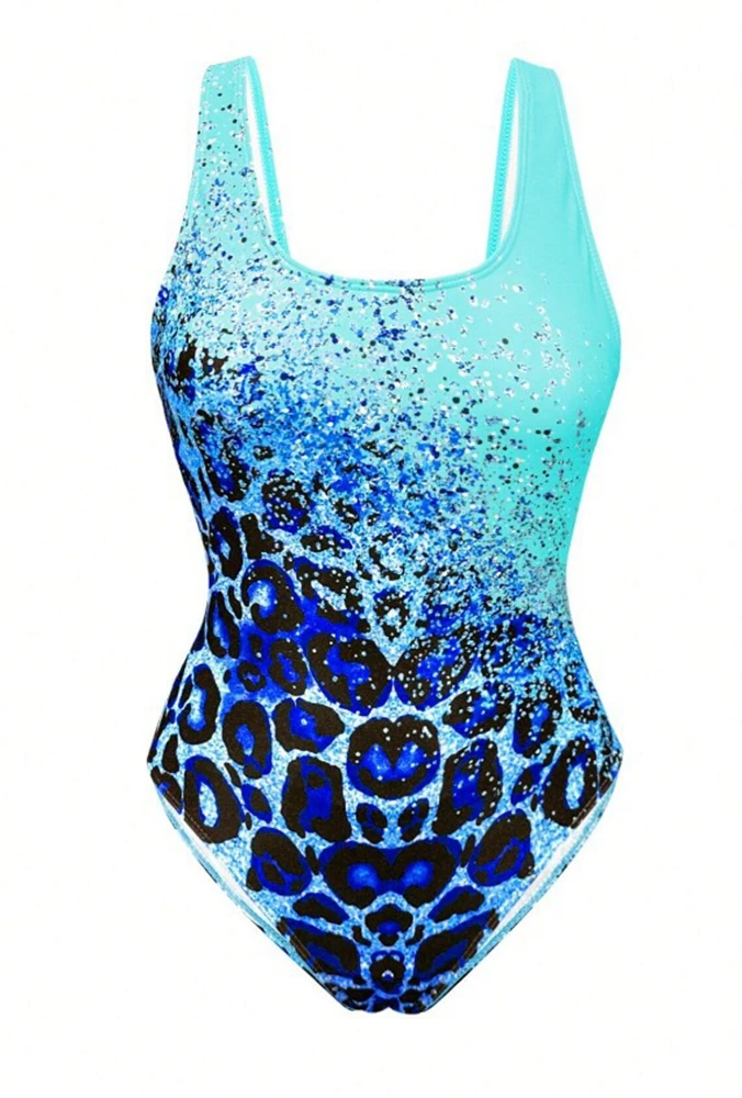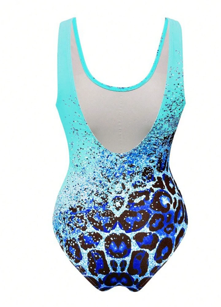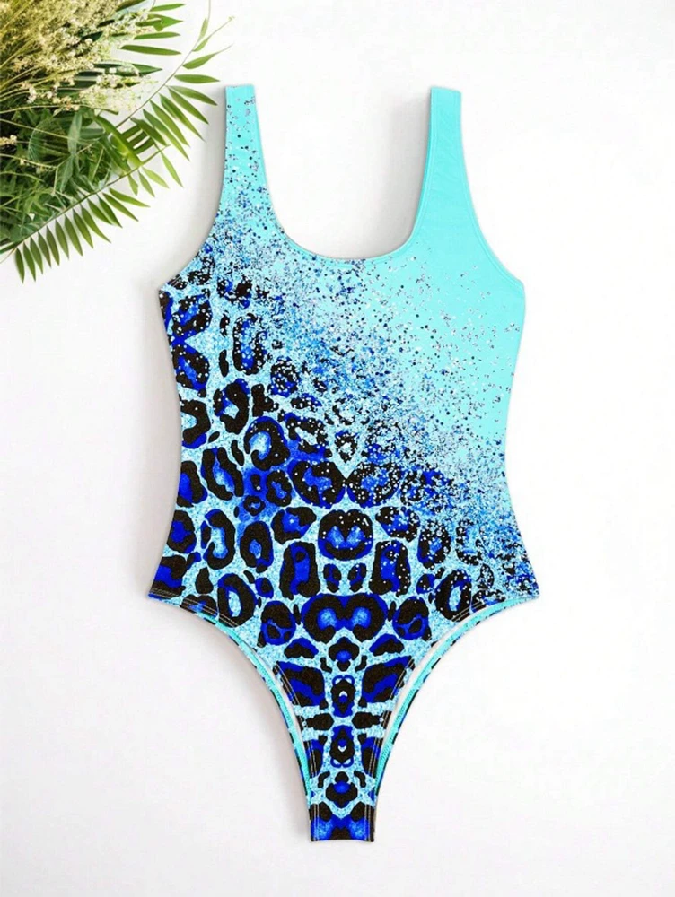 Get ready for the beach with this stylish 3D printed bikini tie dye swimsuit in gradient shades of blue, black, and rose. This backless one-piece is perfect for the summer vibes of 2025!