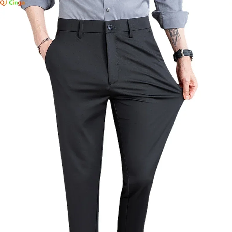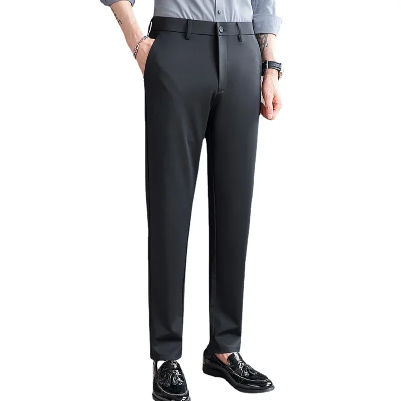 Elevate your casual style with these navy blue stretch suit pants designed for slim men. The perfect blend of fashion and comfort for any occasion.