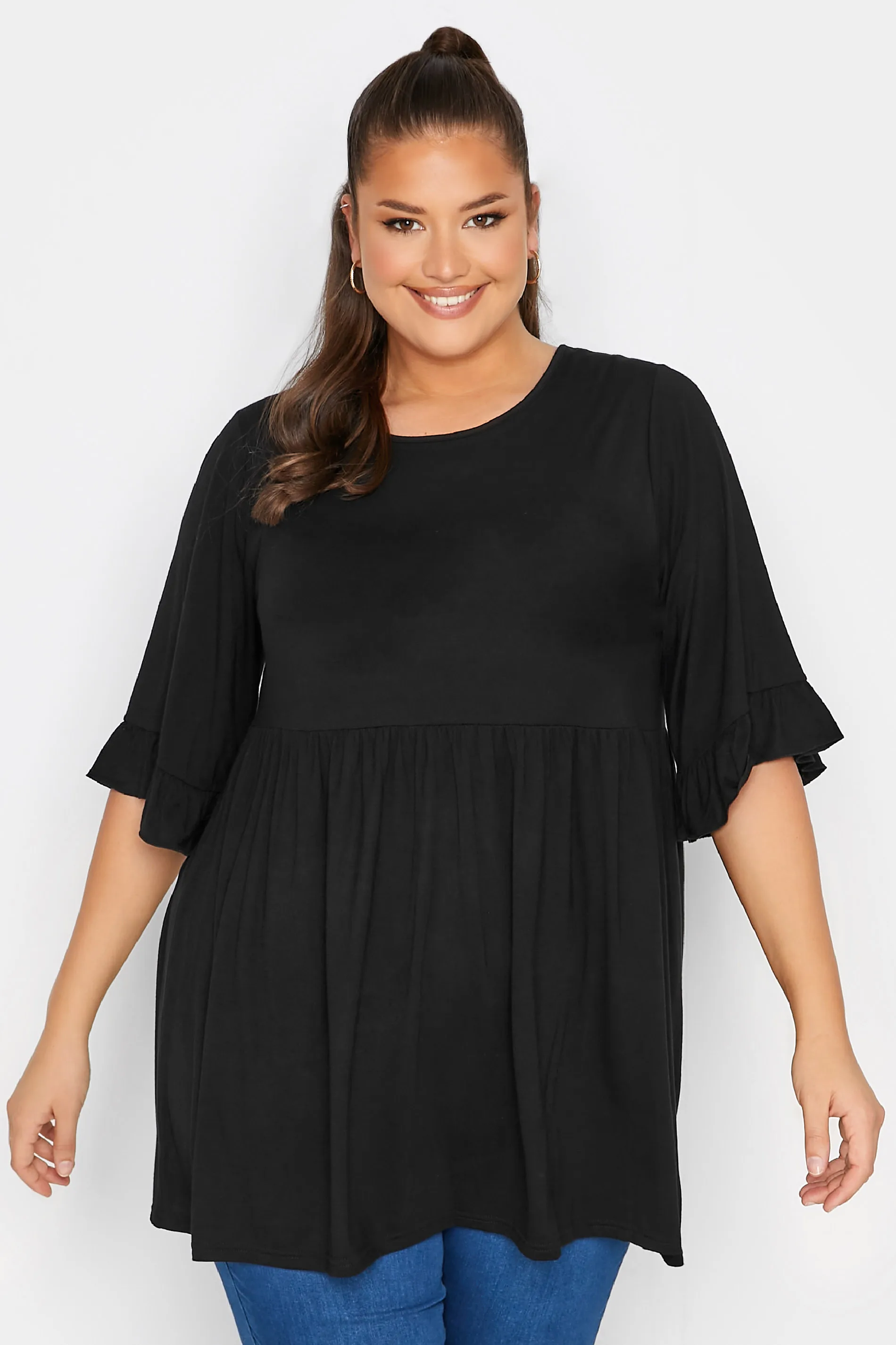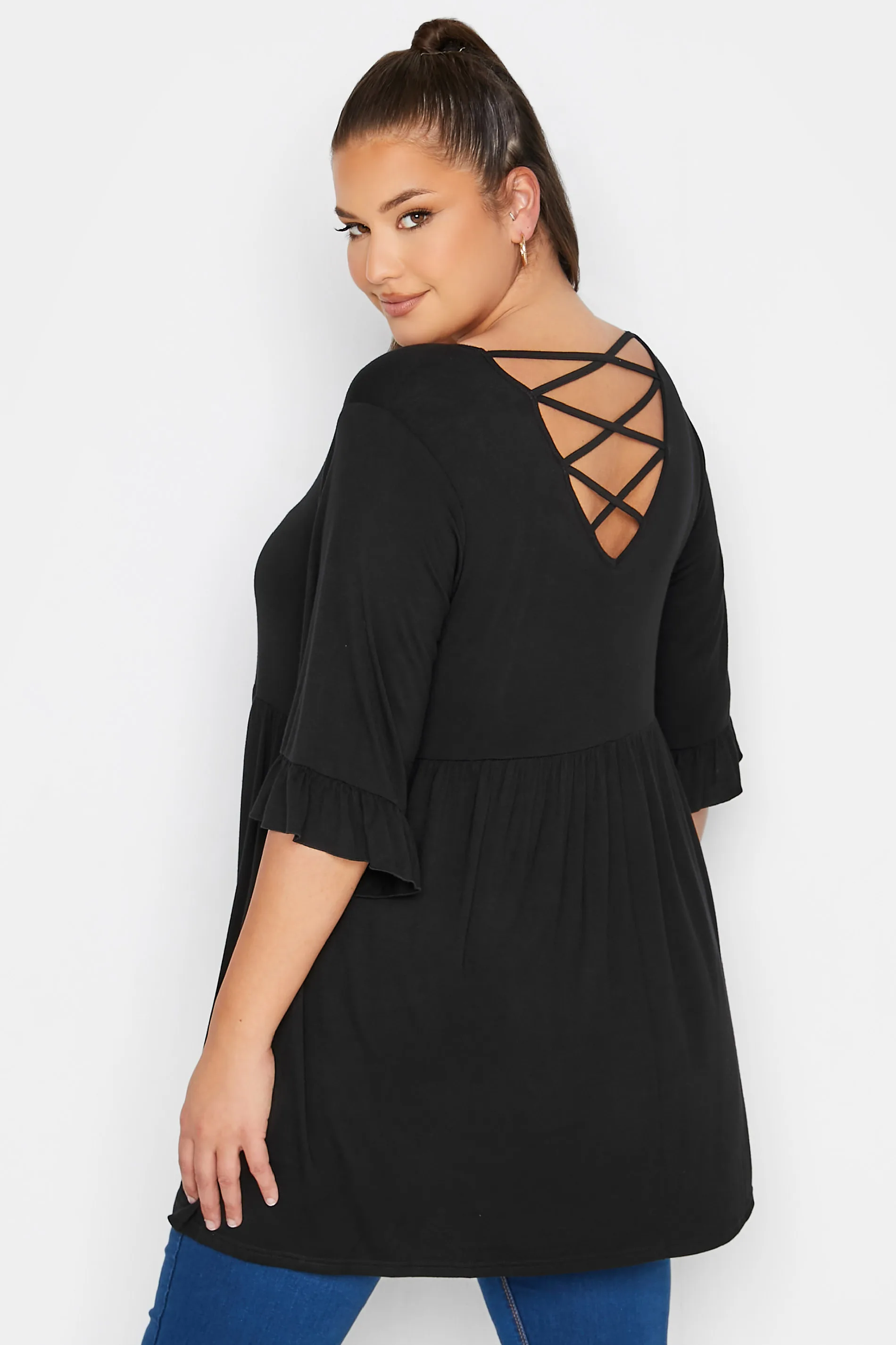 Plus Size Back Cross Summer Elegant Tunic Tops Women Half Flare Sleeve Scoop Neck Casual Loose Fit Peplum Blouse Large Size 7XL