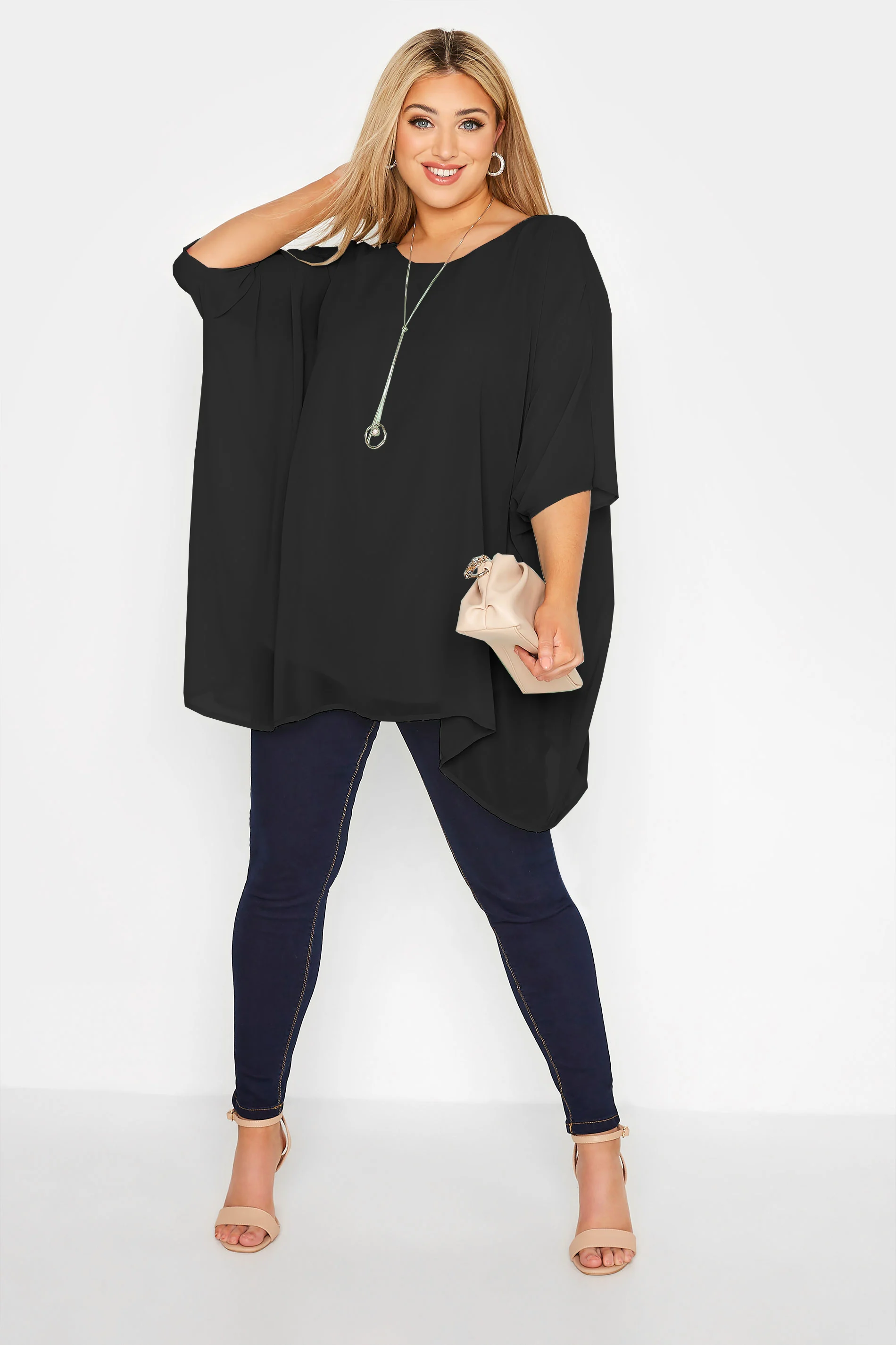 Details:Scoop Neckline,Sheer Outer Layer,3/4 Length Sleeves,Cape Style Design,Lining Inside
