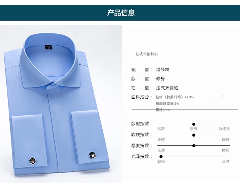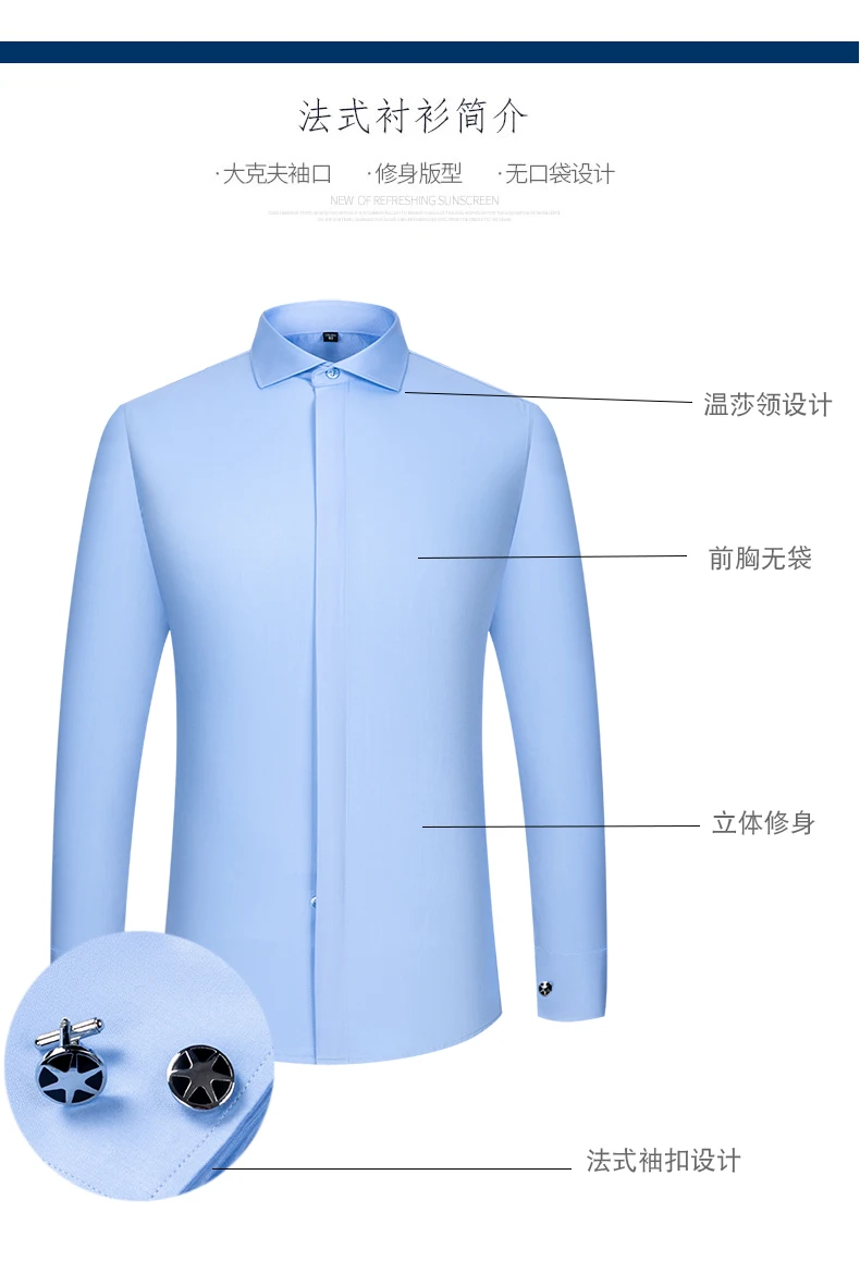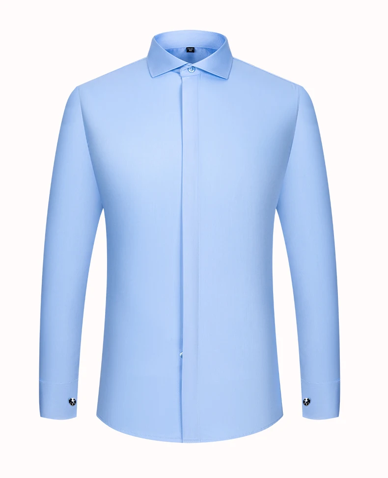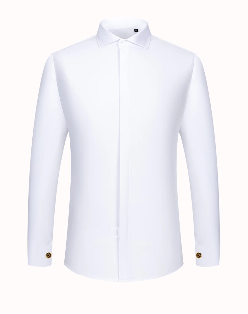 Dress to impress with this high-end French cufflink shirt designed for formal occasions. Its slim fit and concealed buttons exude sophistication, making it a perfect choice for weddings.