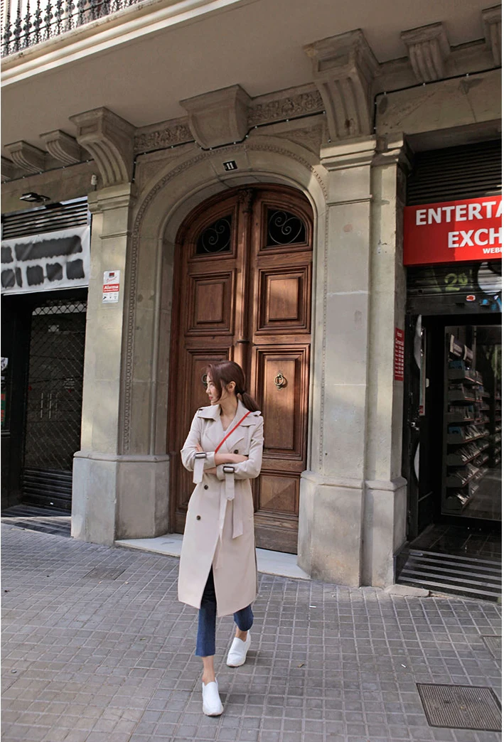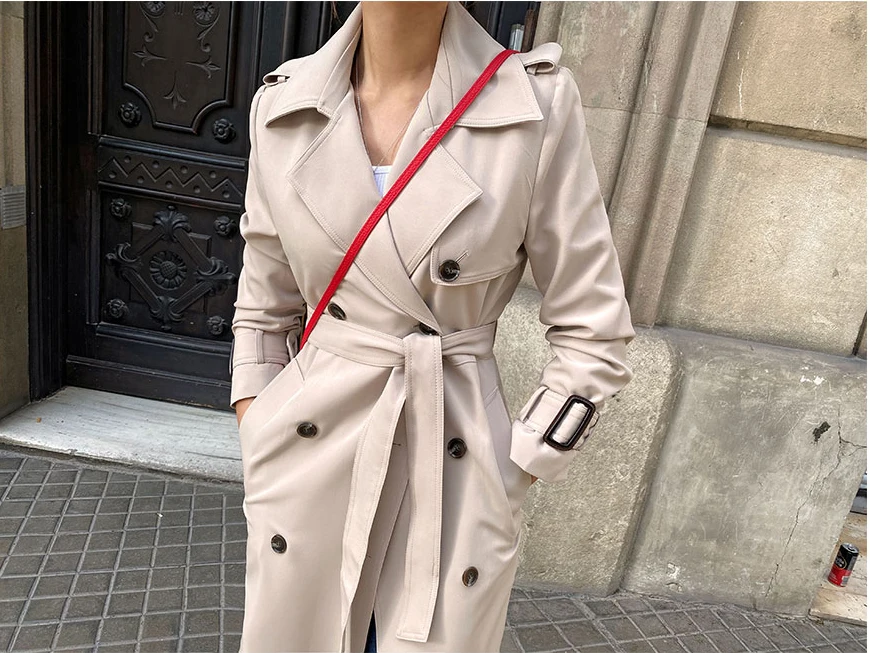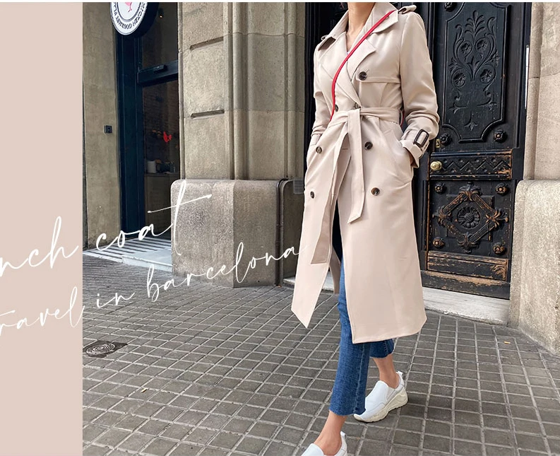 Spring and autumn women’s korean long black red khaki plus size female trench coat