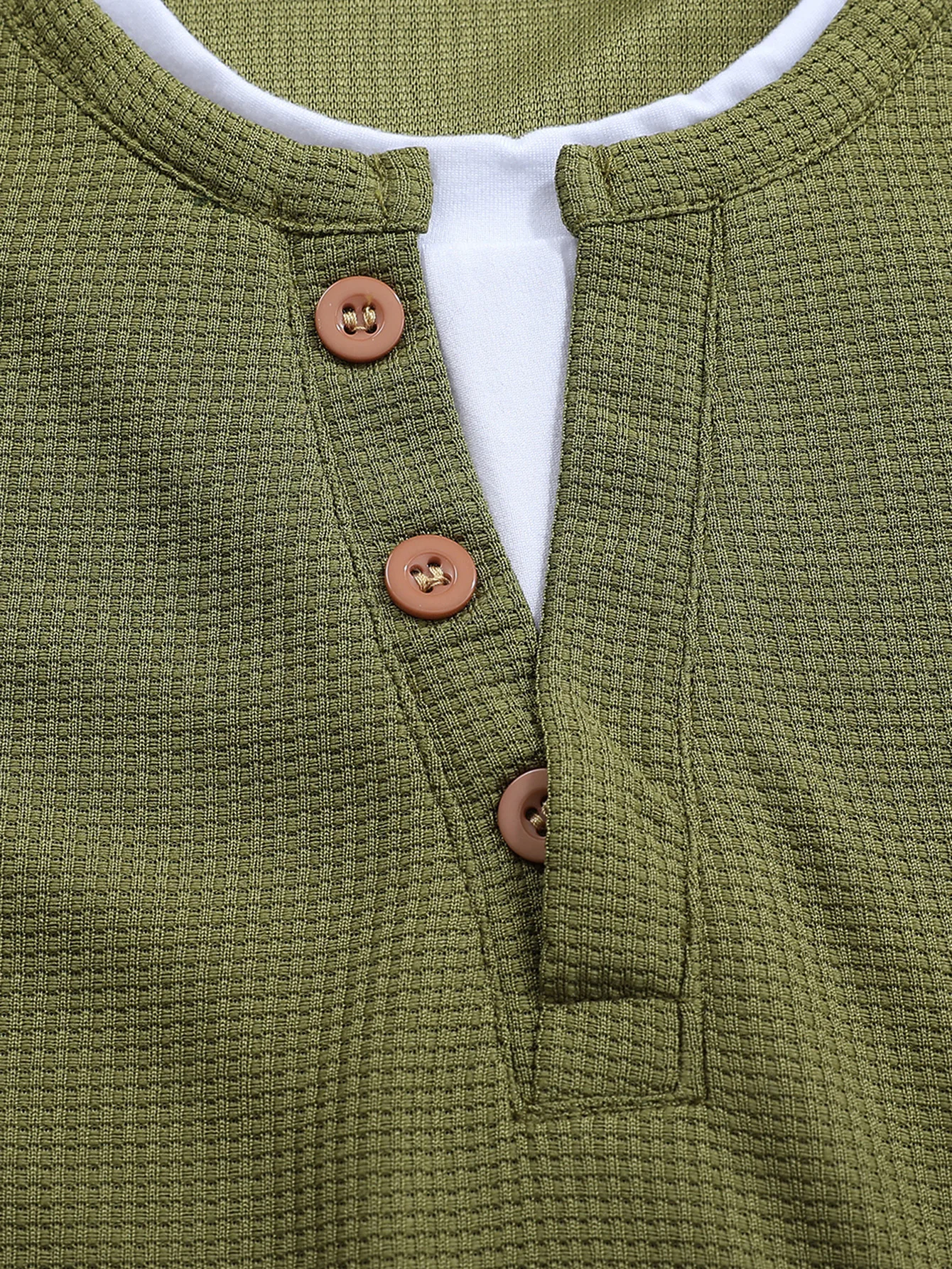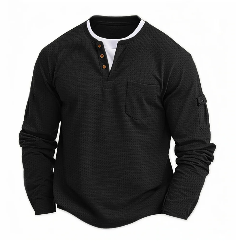 Stylish Men’s Button Henley Neck Long Sleeve T-Shirt – Fashion Waffle Design