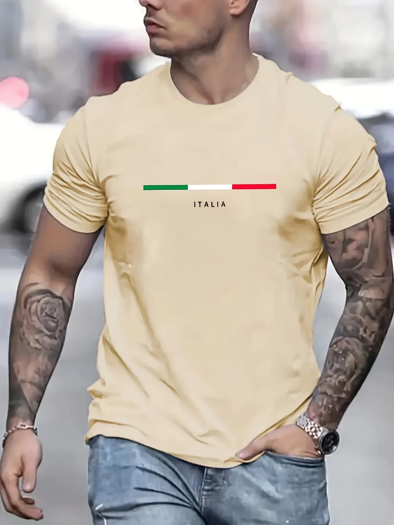 Stay comfortable and stylish with this men’s 100% cotton casual sports T-shirt featuring an oversized ITALIA print and a comfortable round neck design.