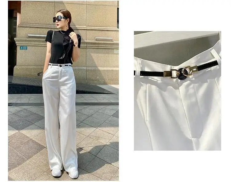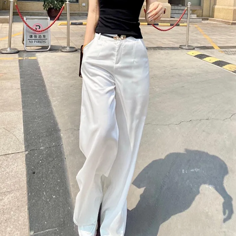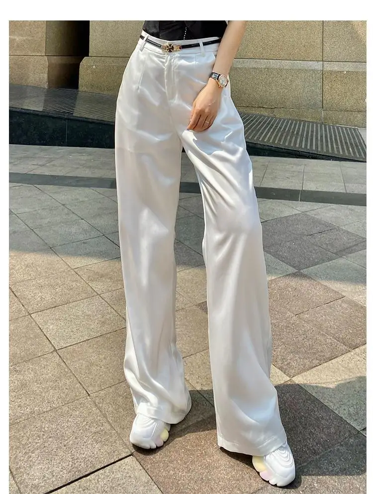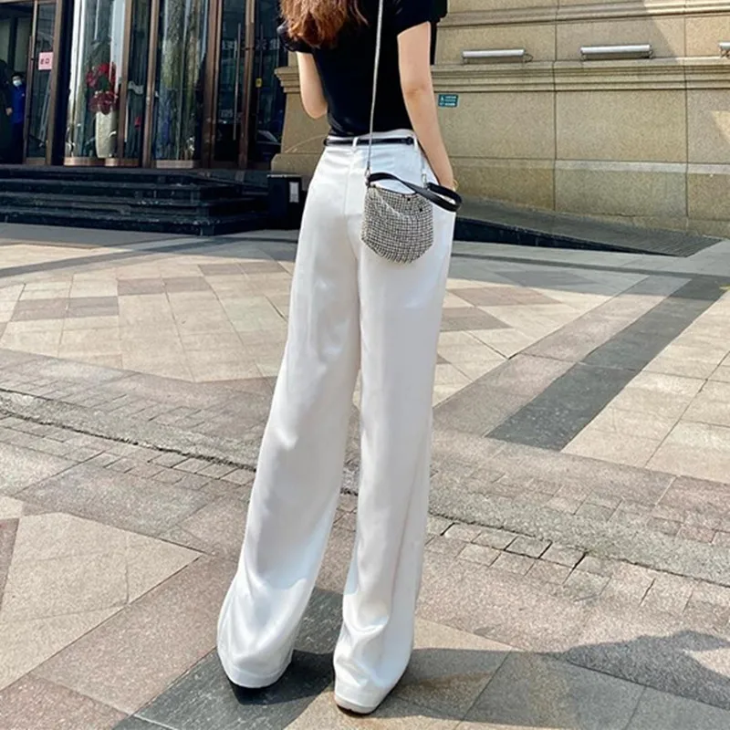 Summer Silk Satin Women's Pants High Waist Casual White Black Korean Fashion Wide Leg Suit Pants for Women Trousers Oversized