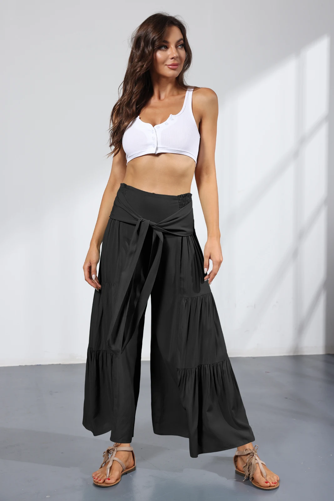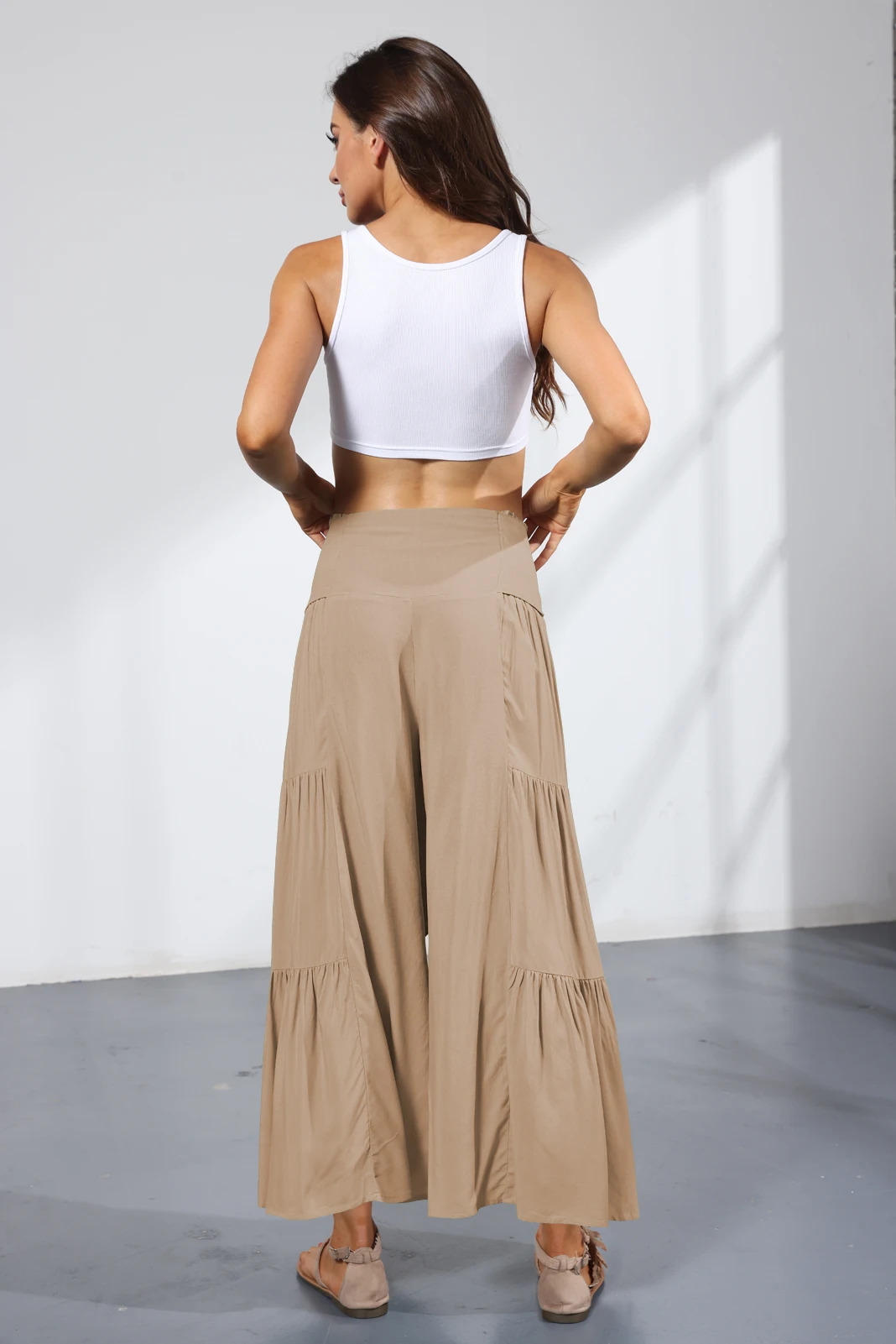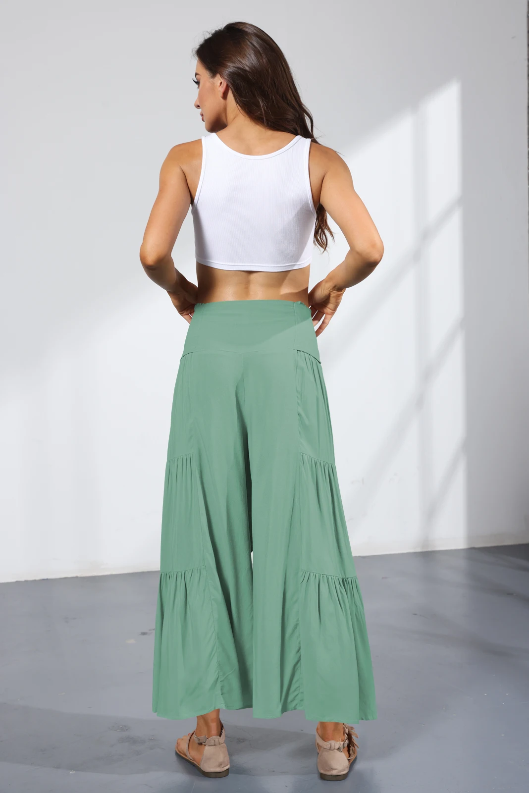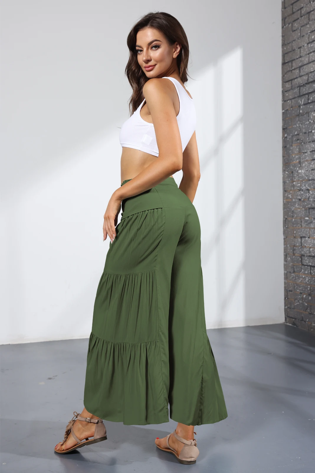 Summer Wide Leg Ankle Length Pants High Waist Solid Color Pleated Flared Trousers Women Clothing Plus Size