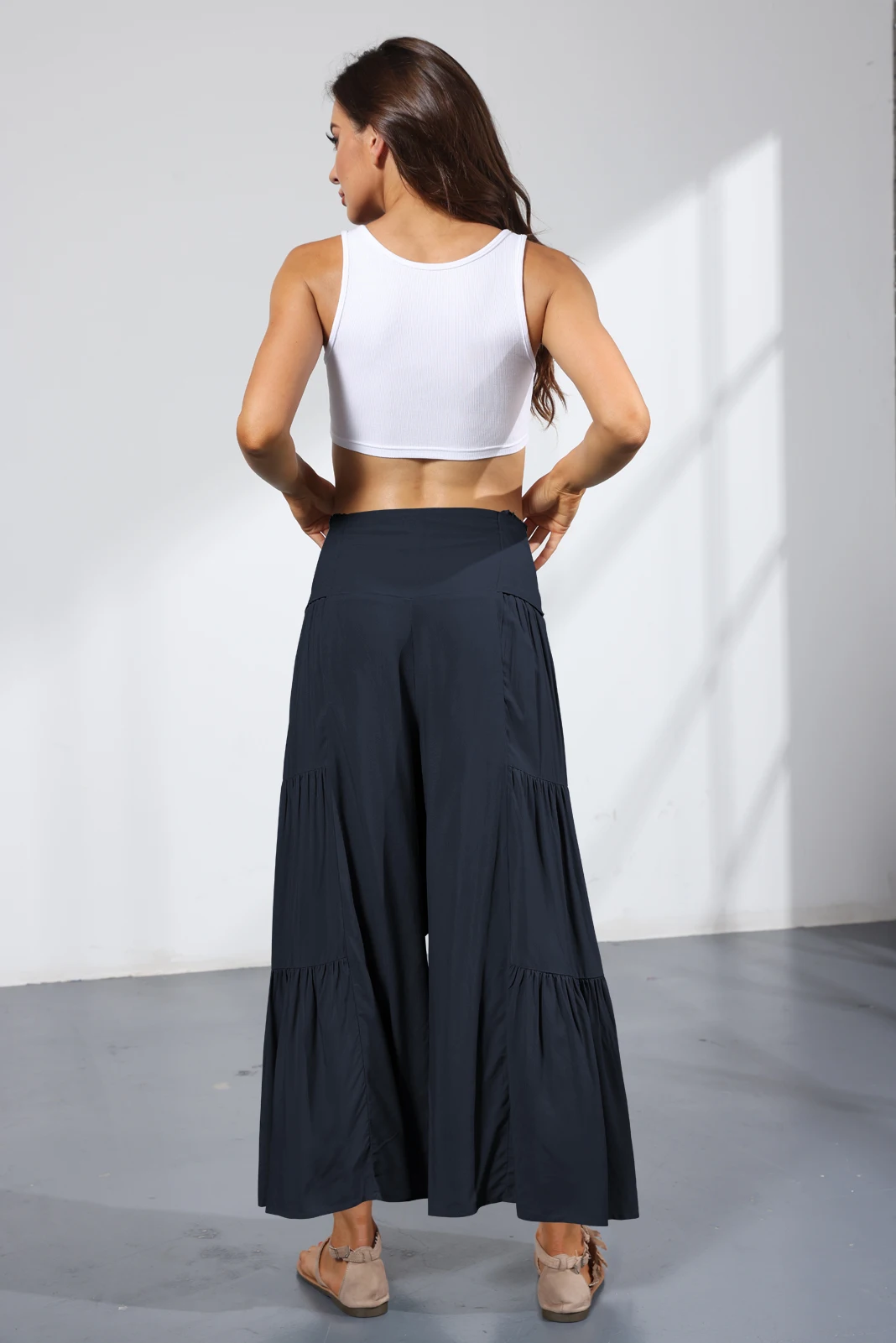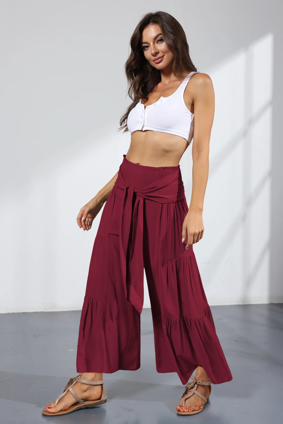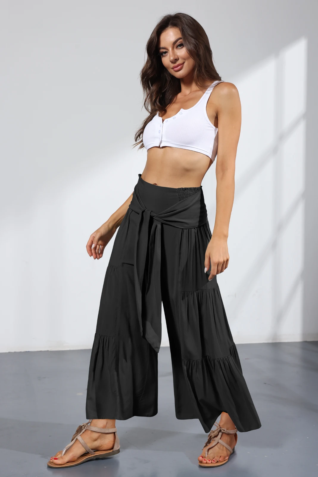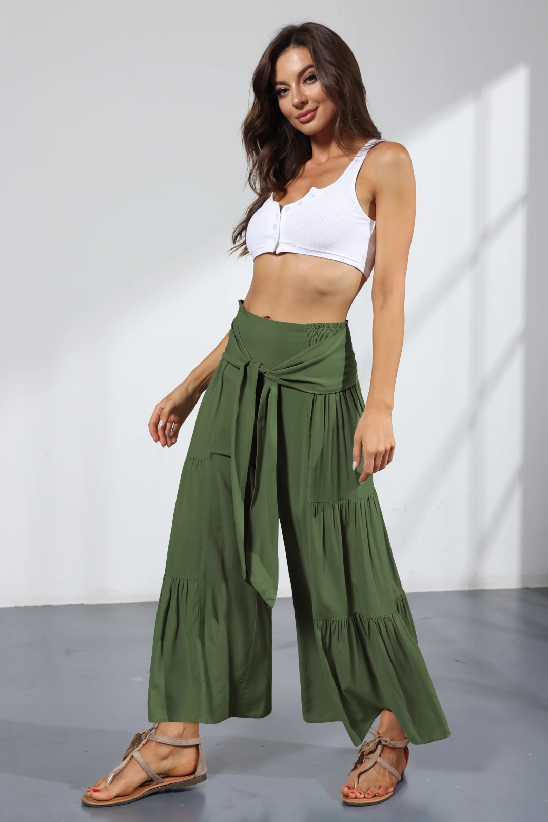 Summer Wide Leg Ankle Length Pants High Waist Solid Color Pleated Flared Trousers Women Clothing Plus Size