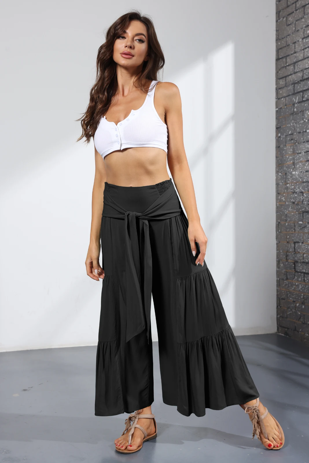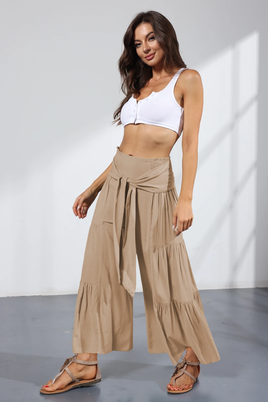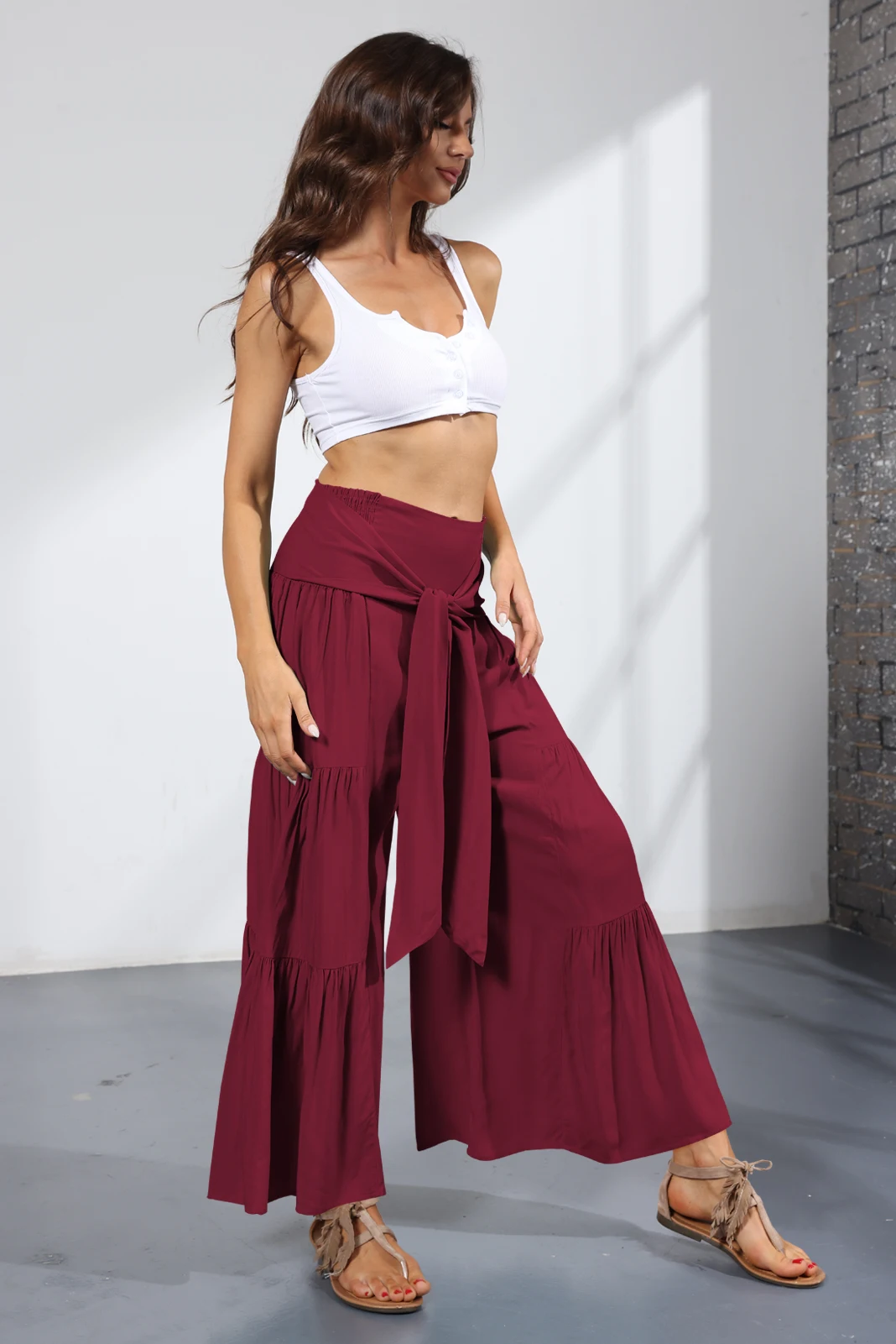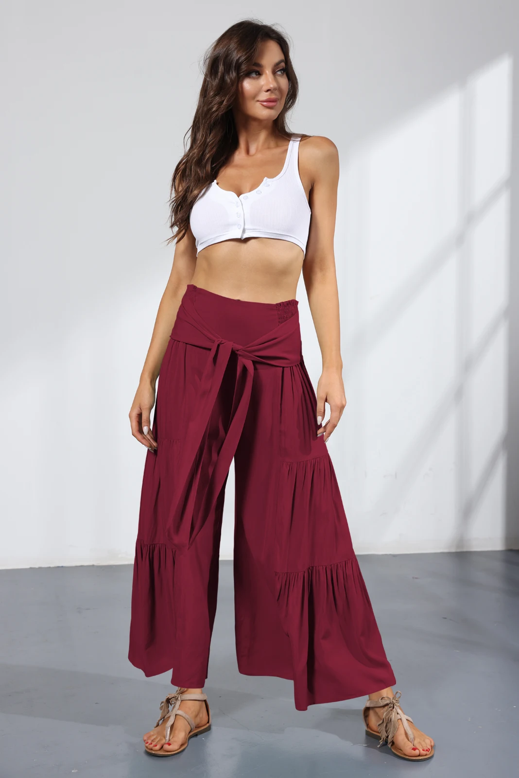 Summer Wide Leg Ankle Length Pants High Waist Solid Color Pleated Flared Trousers Women Clothing Plus Size