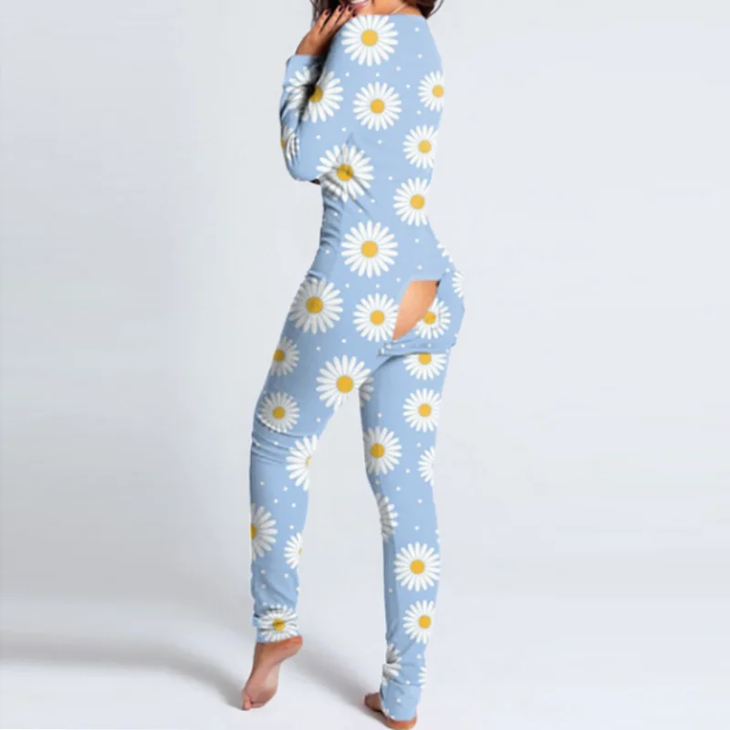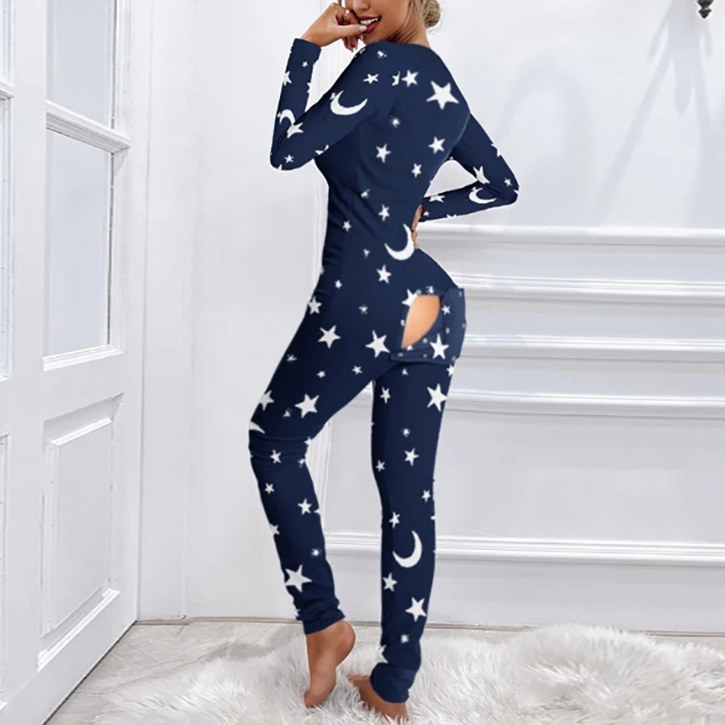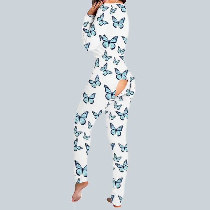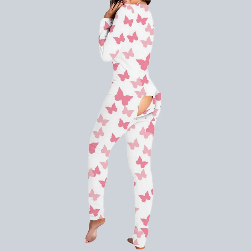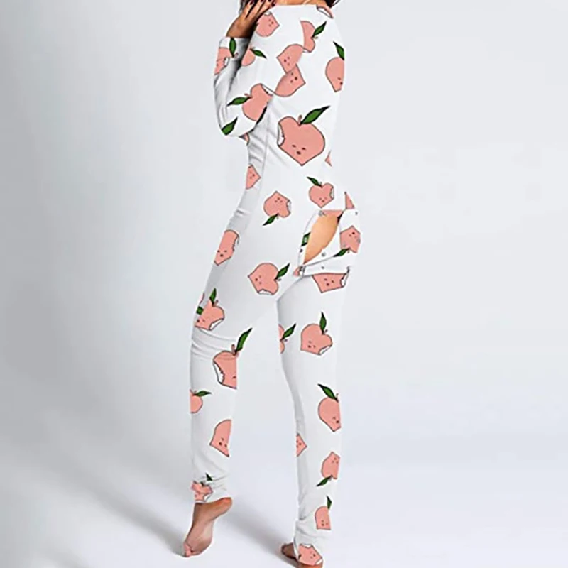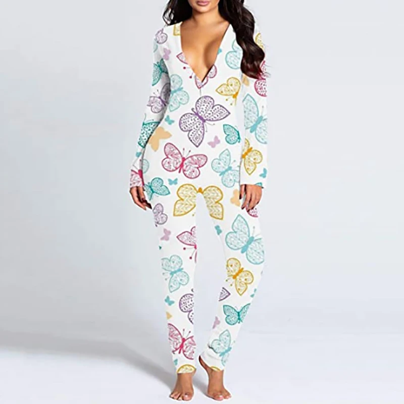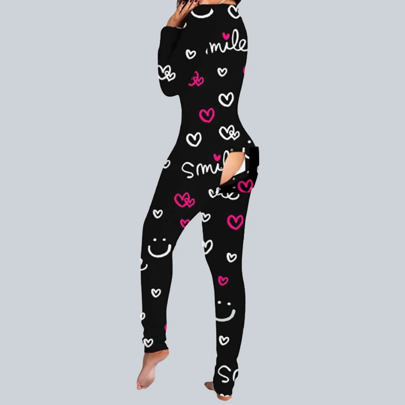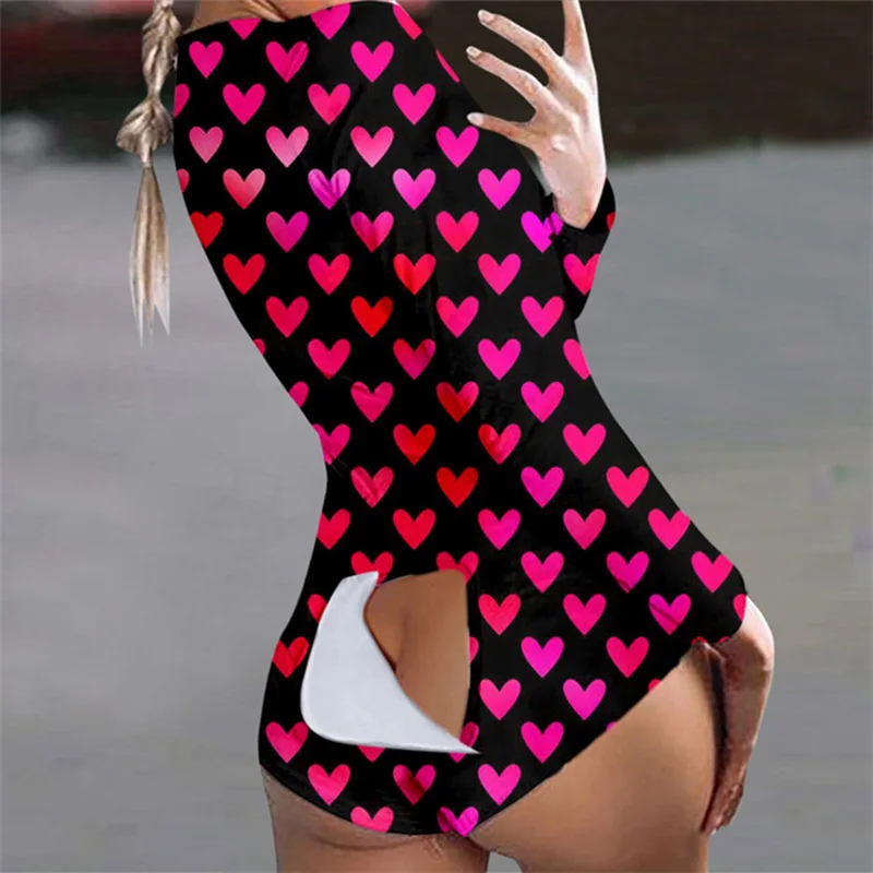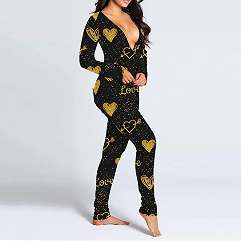 Summer Women V-Neck Full Sleeve Homewear Jumpsuits Sexy Heart Printing Sleepwear Rompers Plus Size 3XL Ladies Loungewear Pajamas