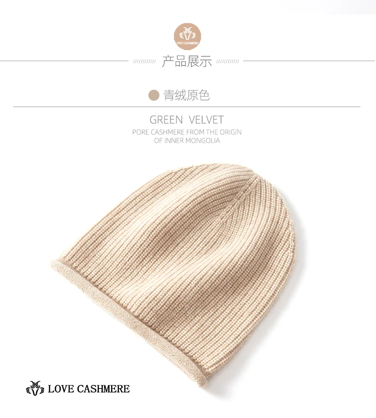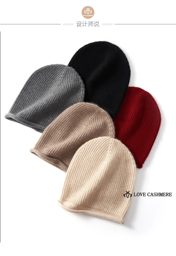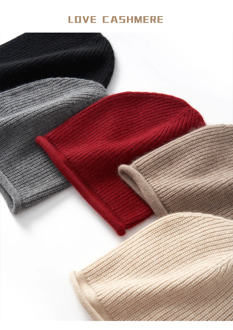 Thick Rolled Hem Women Cashmere Knitted Caps Moss Stitch Beanies 2023 Fashion Winter Hat Soft Hat Wool Blend Warm Hair Bonnet