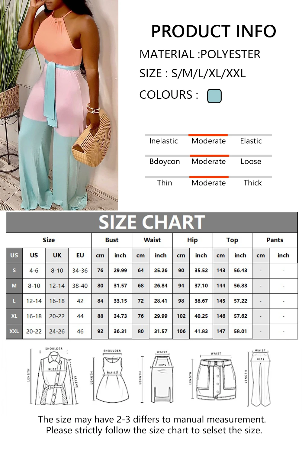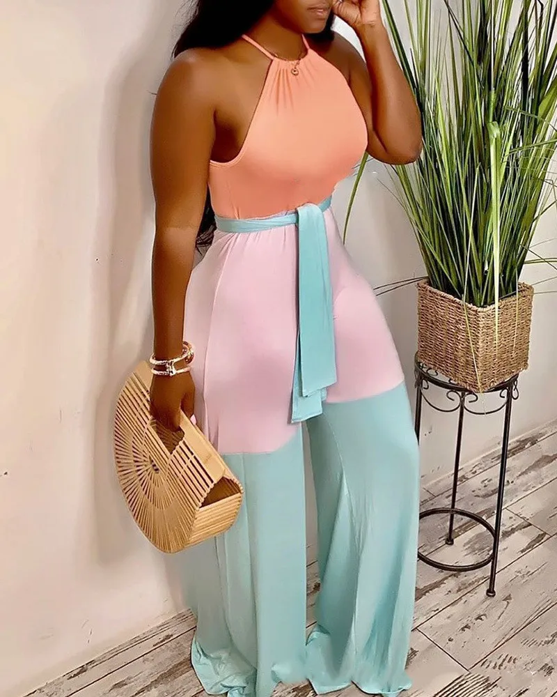 VANHAO Summer New Women Fashion Contrast Color Bandage Long Jumpsuit Ladies Sexy Halter Skinny Romper Wholesale