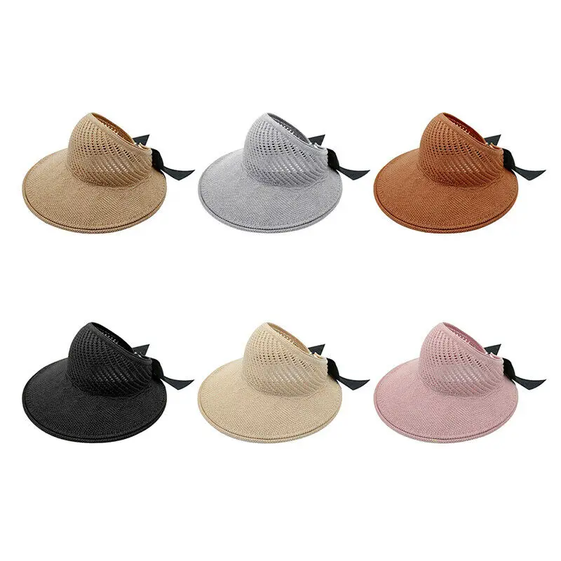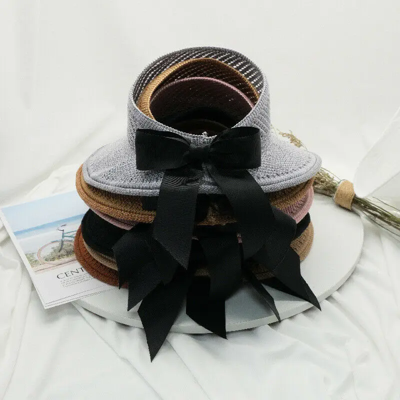 Women Fashion Summer Wide Brim Foldable Sun Hat Ladies Anti-ultraviolet Beach Sunscreen Visor Cap Empty Top Breathable Straw Hat
