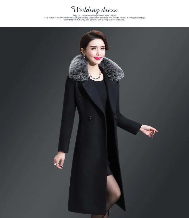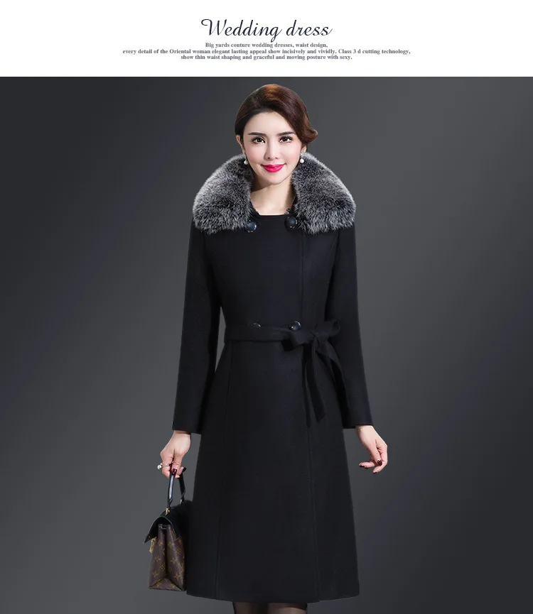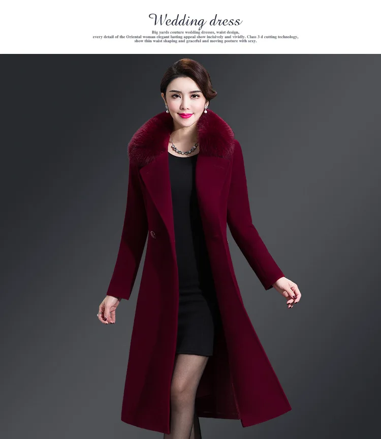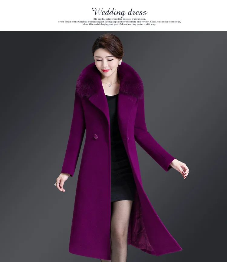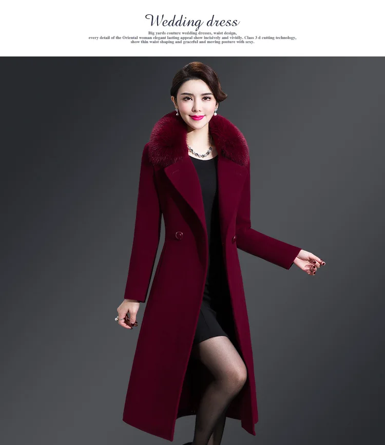 Women Woolen Coat 2022 Autumn Winter Plus Size 5XL Elegant Long Coat Female Jacket Fur collar Wool High Quality Overcoat Outwear