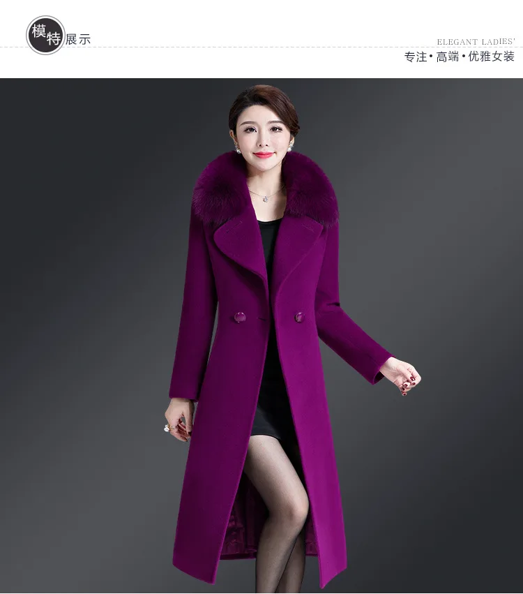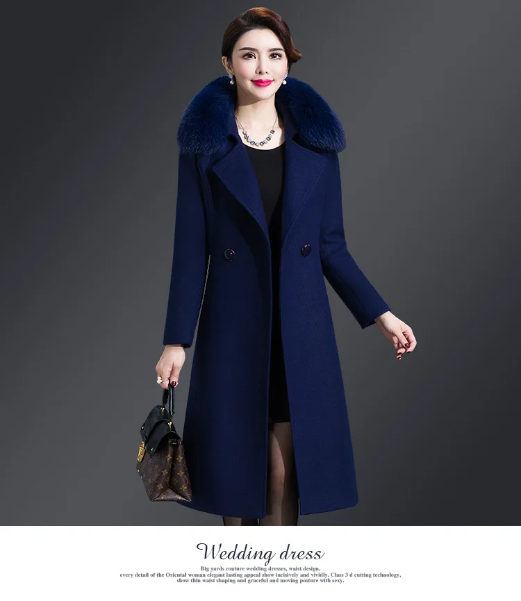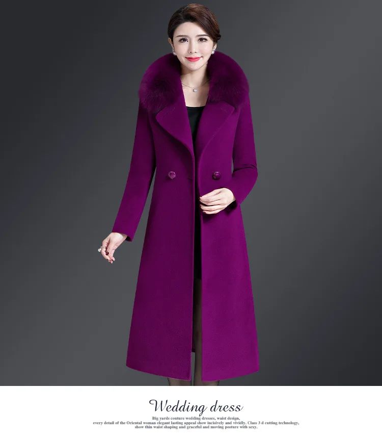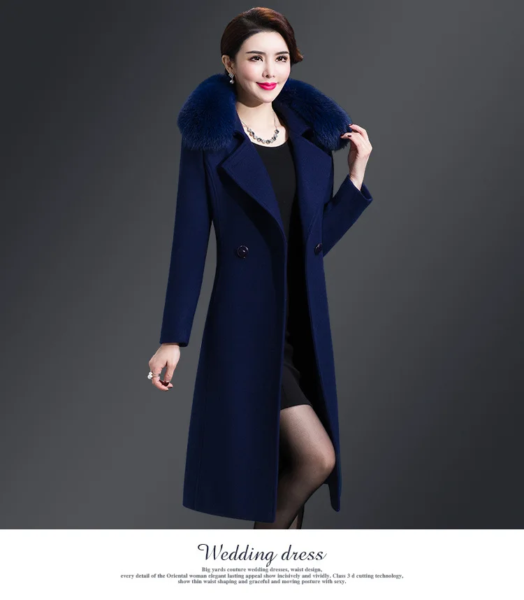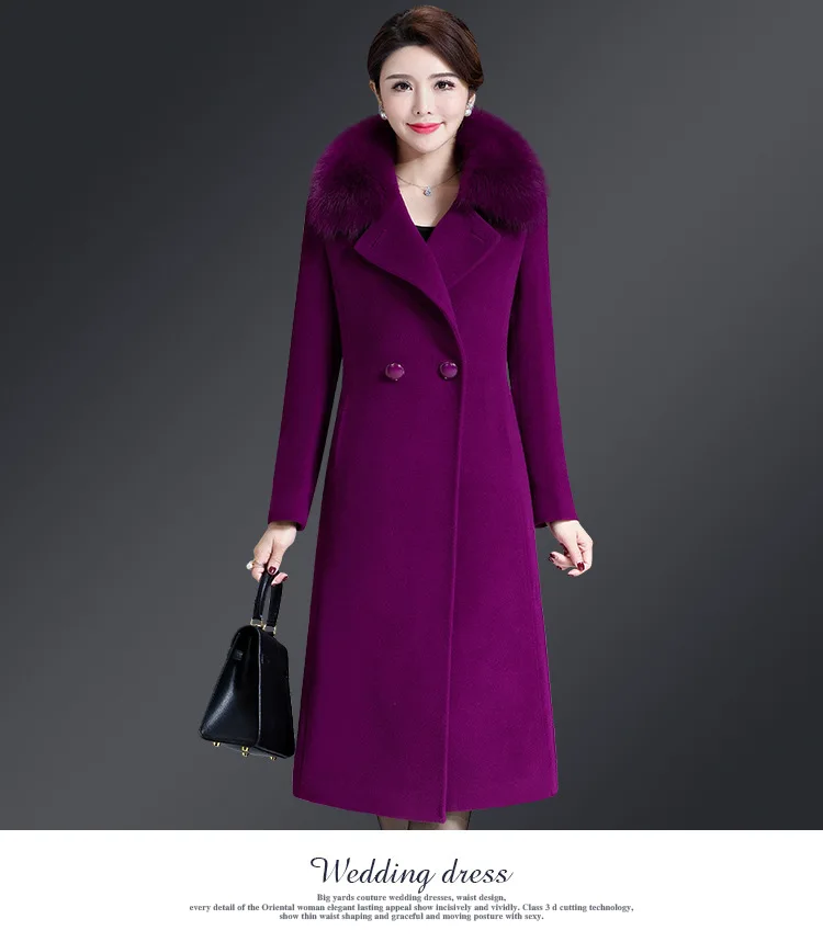 Women Woolen Coat 2022 Autumn Winter Plus Size 5XL Elegant Long Coat Female Jacket Fur collar Wool High Quality Overcoat Outwear