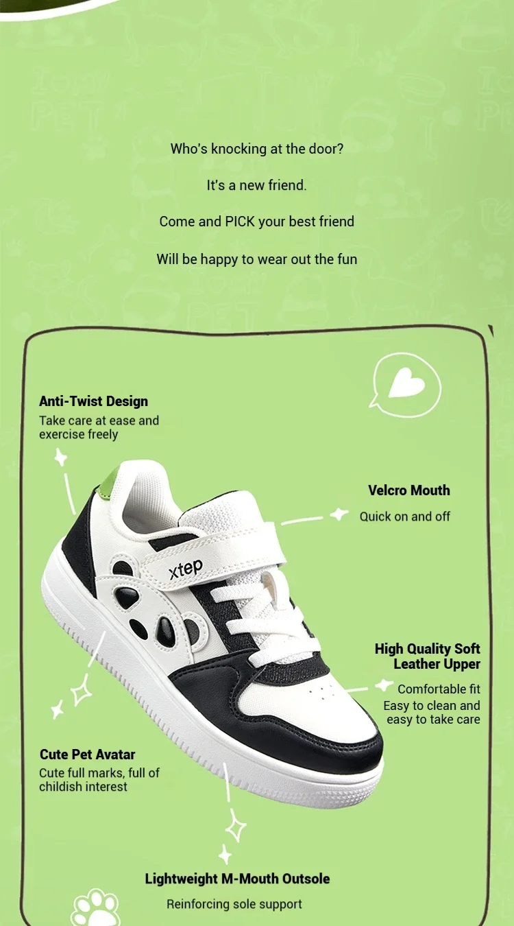 Xtep Boys Skatebording Shoes 2025 Spring Fashion Cute Pet Non-slip Sneakers