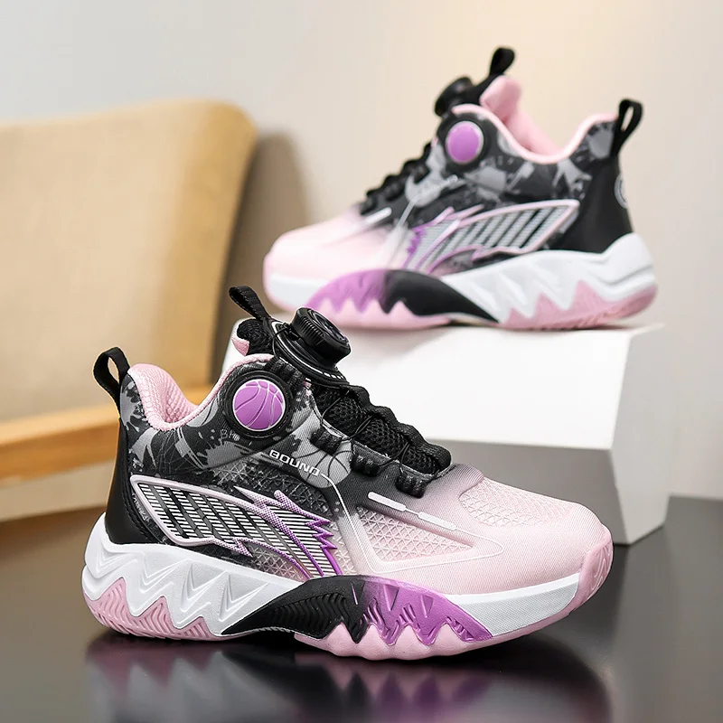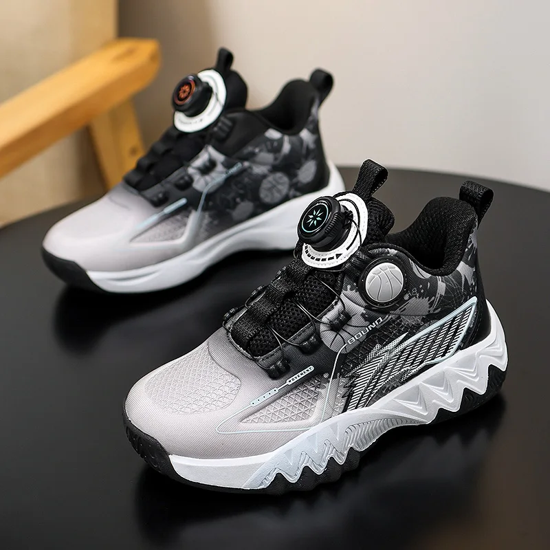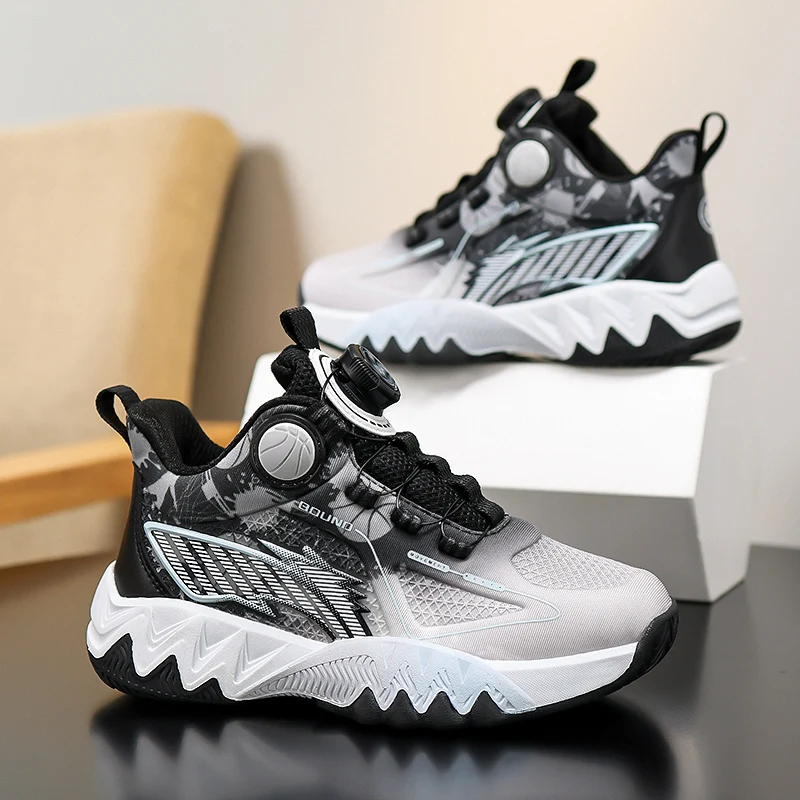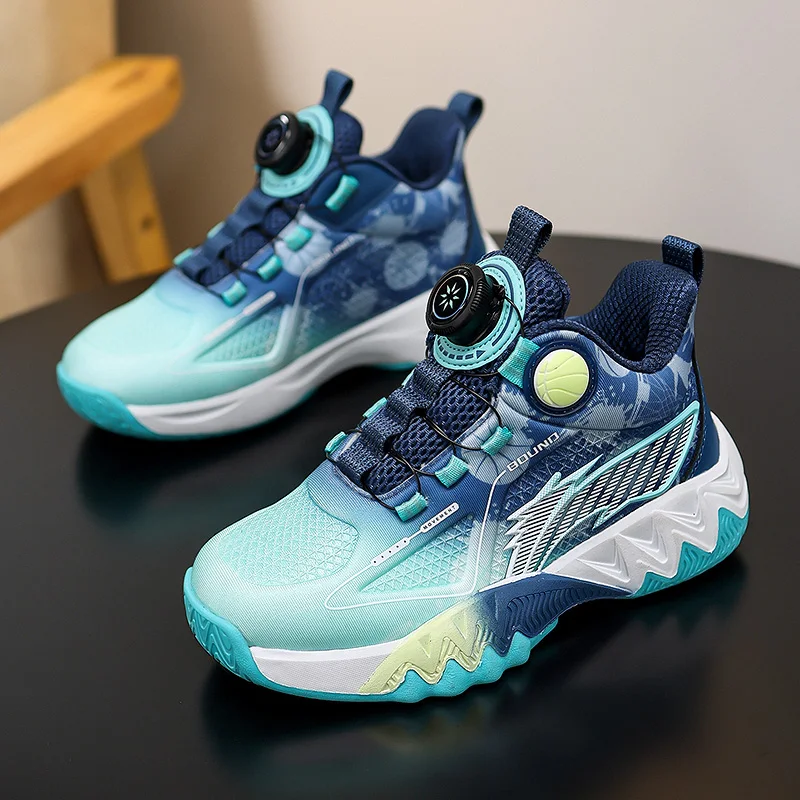 Experience superior performance on the court with these breathable and wear-resistant youth basketball shoes. Designed for outdoor and campus training, these sneakers offer comfort and stability with a non-slip sole and cushioning technology.